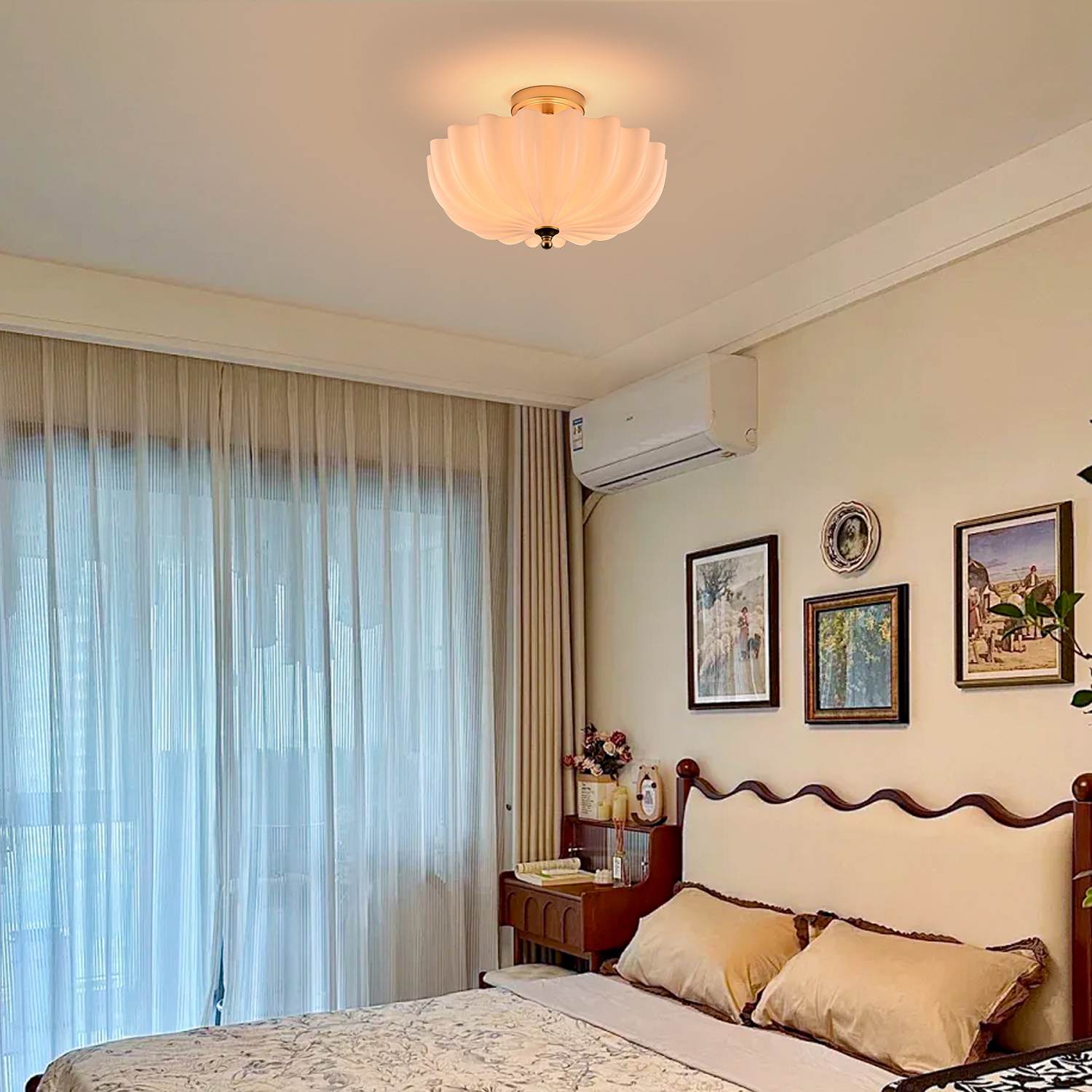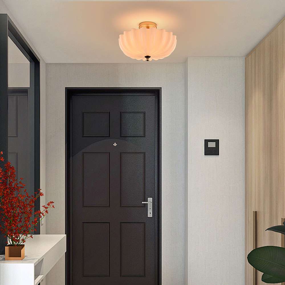 Flaunting a gold finish, the 3-light semi flush mount ceiling light livens up your home with a nice pop of brightness. The light fixture's milk glass shade with the softened, elegant grooves gives your living space a dose of whimsy and artistic charm. Its gold finish glistening finish offers a stark contrast to the milk glass shade, adding charisma and drama to the space. The amazing texture of the glass shade is the perfect finishing touch for your home. The milk glass shade diffuses a soft, subdued light and casts intricate shadows. It adds depth and character to the space, creating an alluring eye appeal.