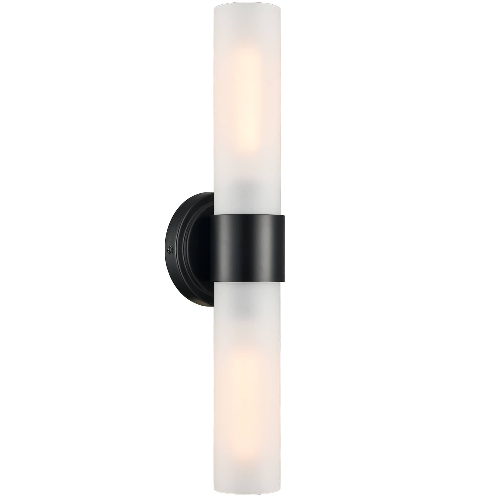 • Modern Black Wall Sconce with Frosted Glass Tube Bathroom Light Fixtures