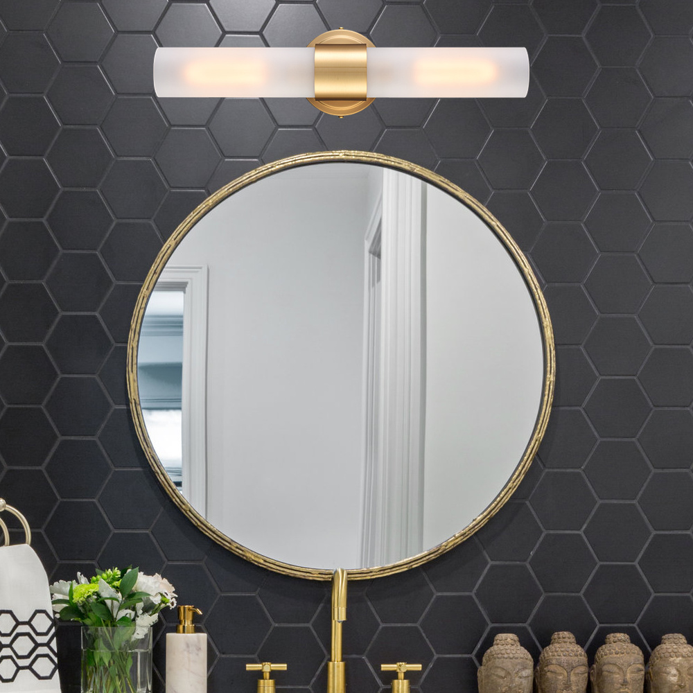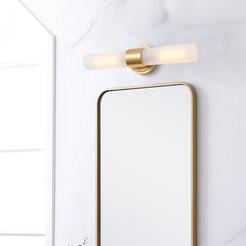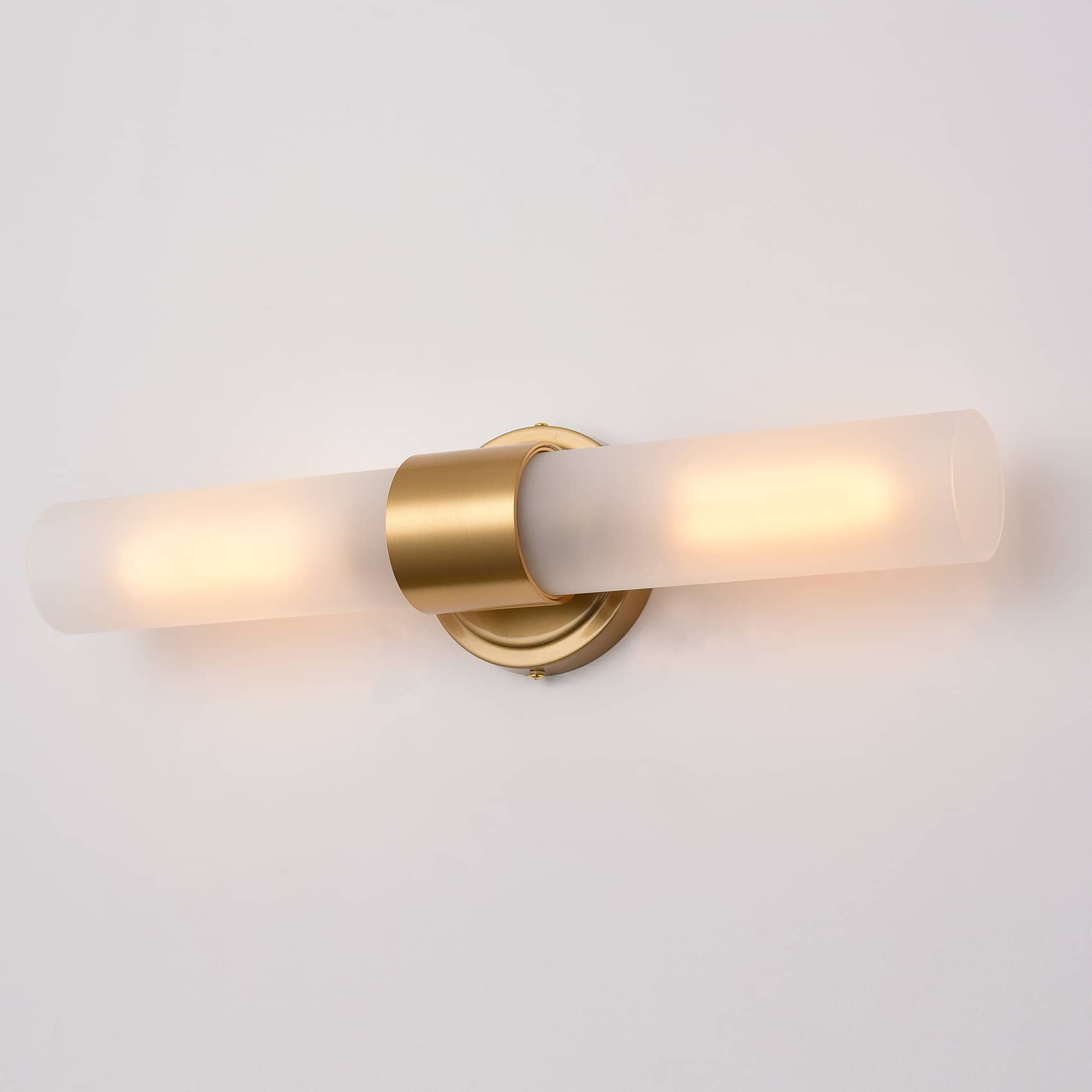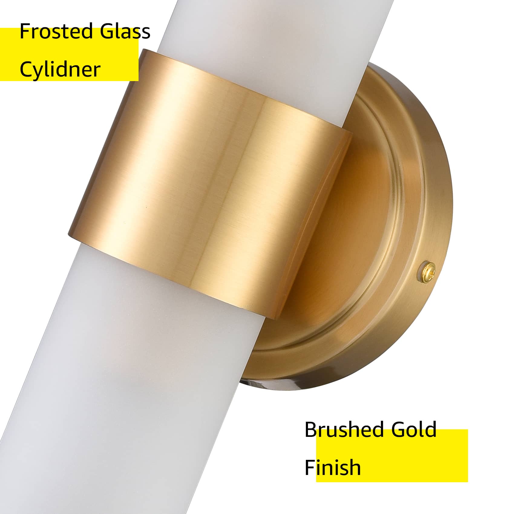 Modern Gold Bathroom Sconces Cylinder Frosted Glass, 2-Light Modern Gold Bathroom Sconces Cylinder Frosted Glass, 2-Light