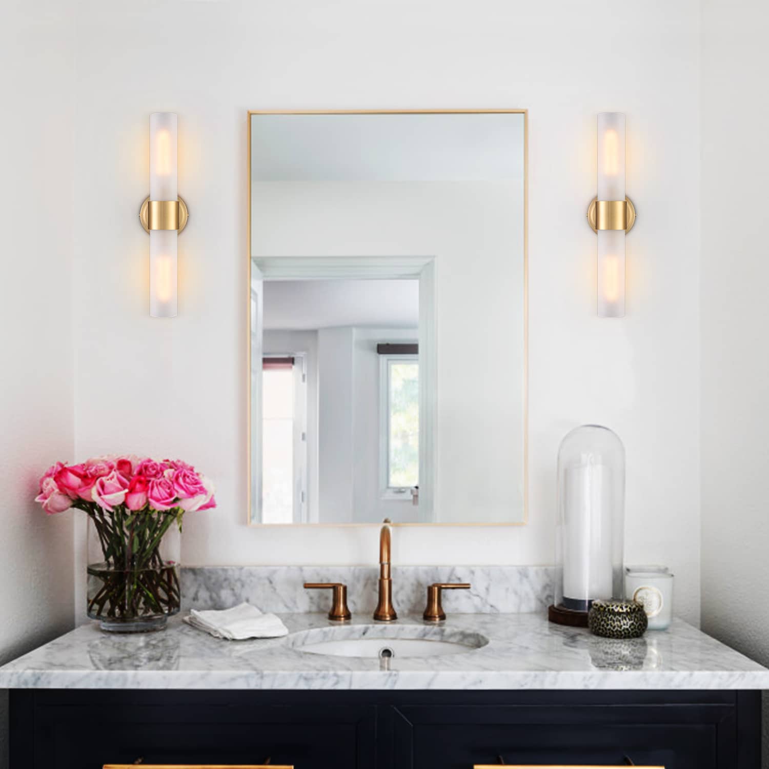• Modern Gold Wall Sconce with Frosted Glass Tube Bathroom Vanity Light Fixtures
