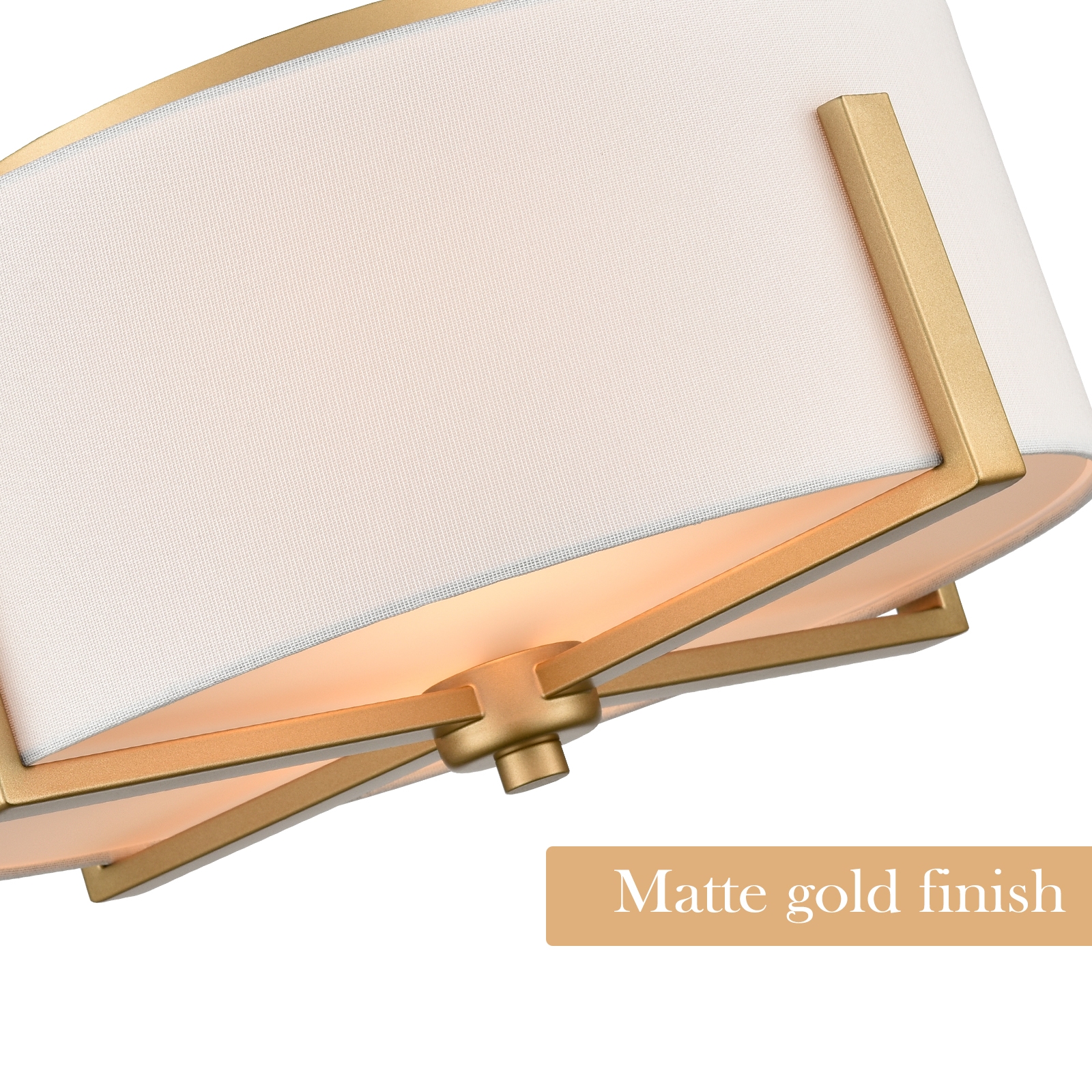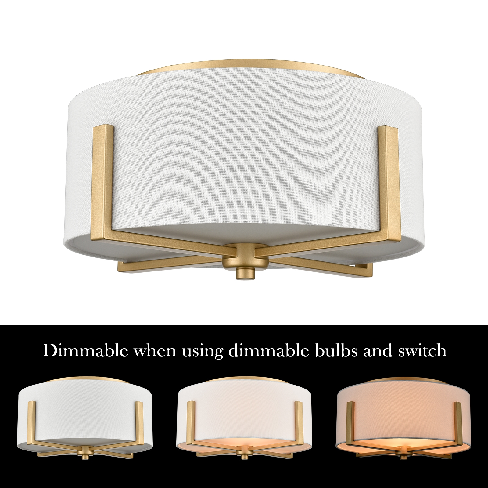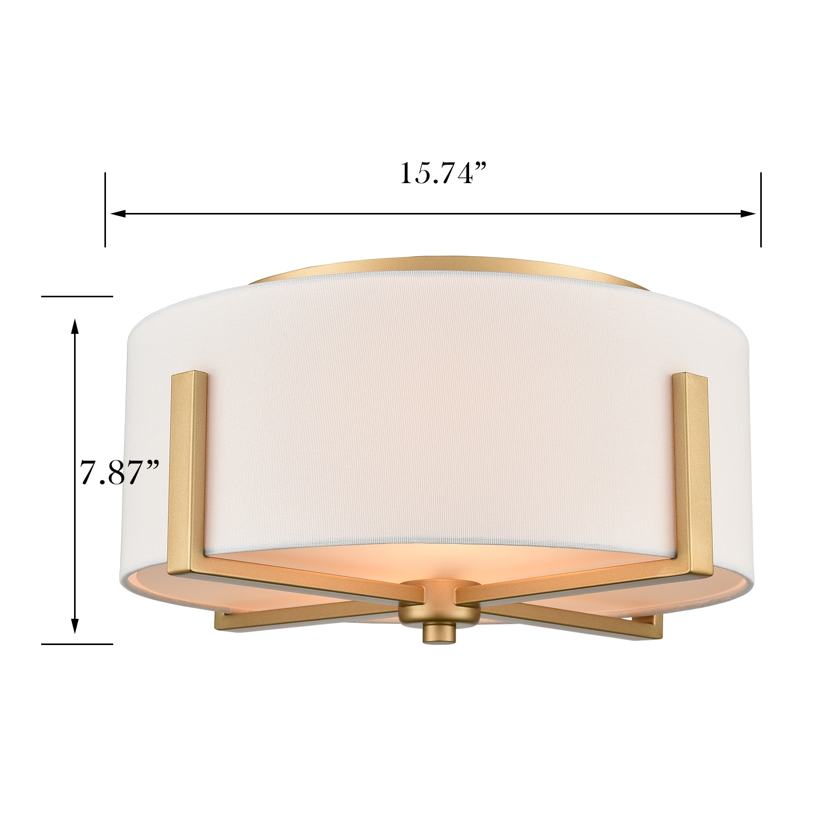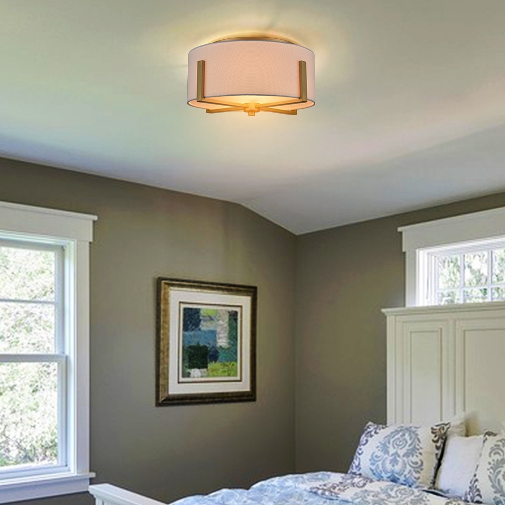 The gold flush mount ceiling light flaunts a rustproof gold finish, pepping up your living space with a bit of bling. Its white linen drum shade is held aloft by the four-pronged gold metal frame which brings rich visual interest to your interior. The light pouring through the linen drum shade is gently muted and fills the room without any glare. Its rounded drum shade gives your home a touch of geometry. Its gold finish contrasts the white linen drum shade and adds a ton of eye appeal to the space.