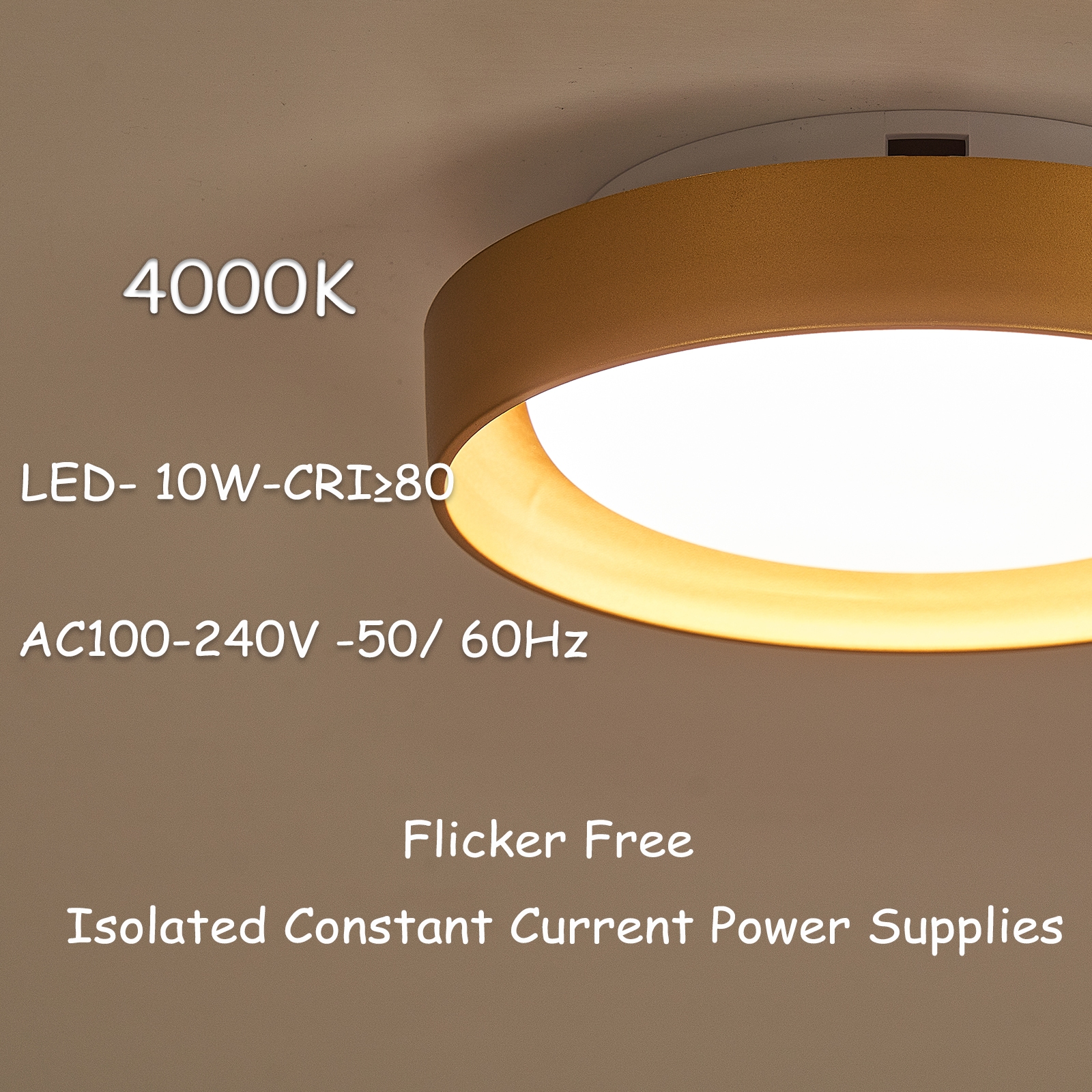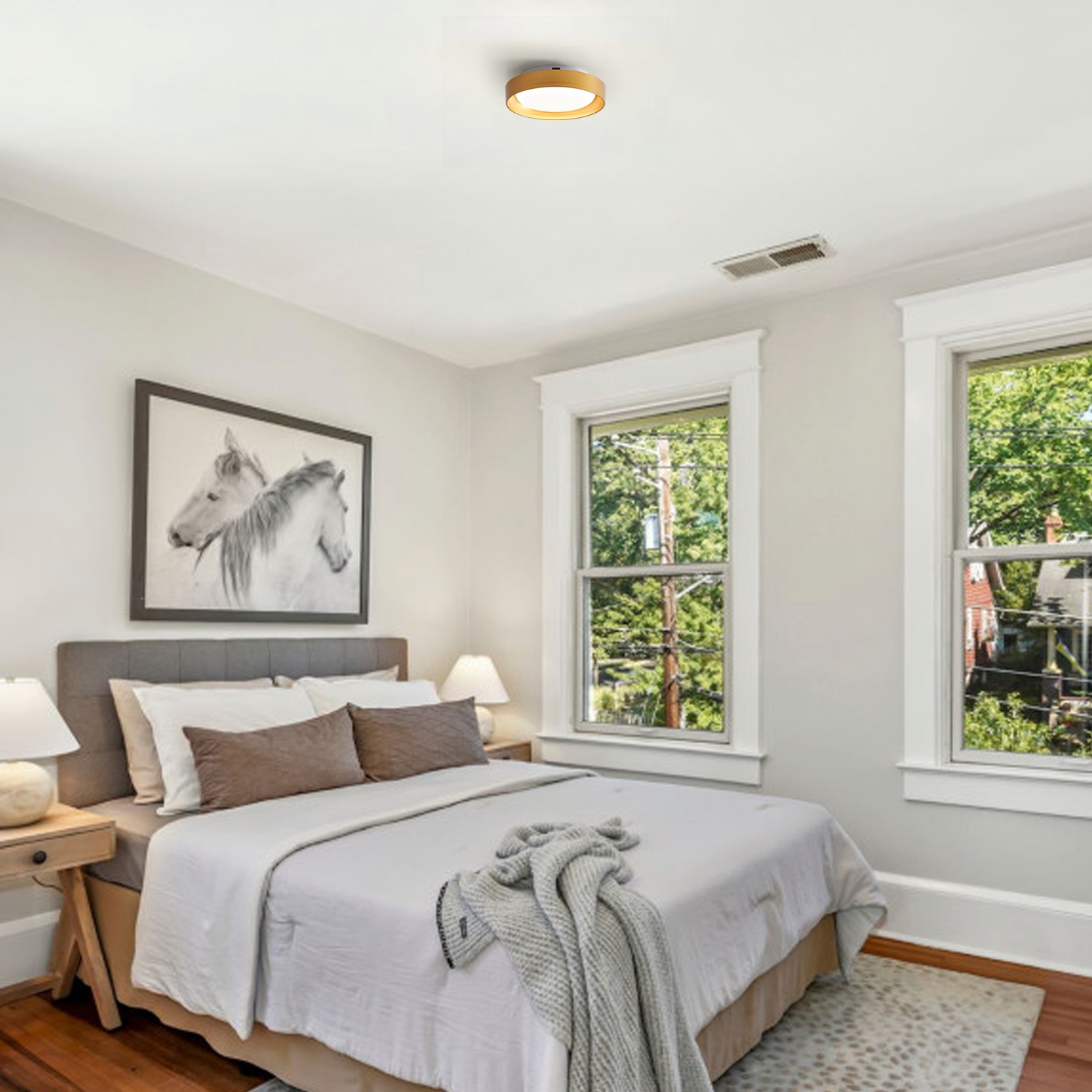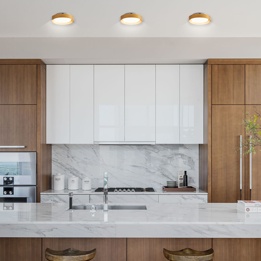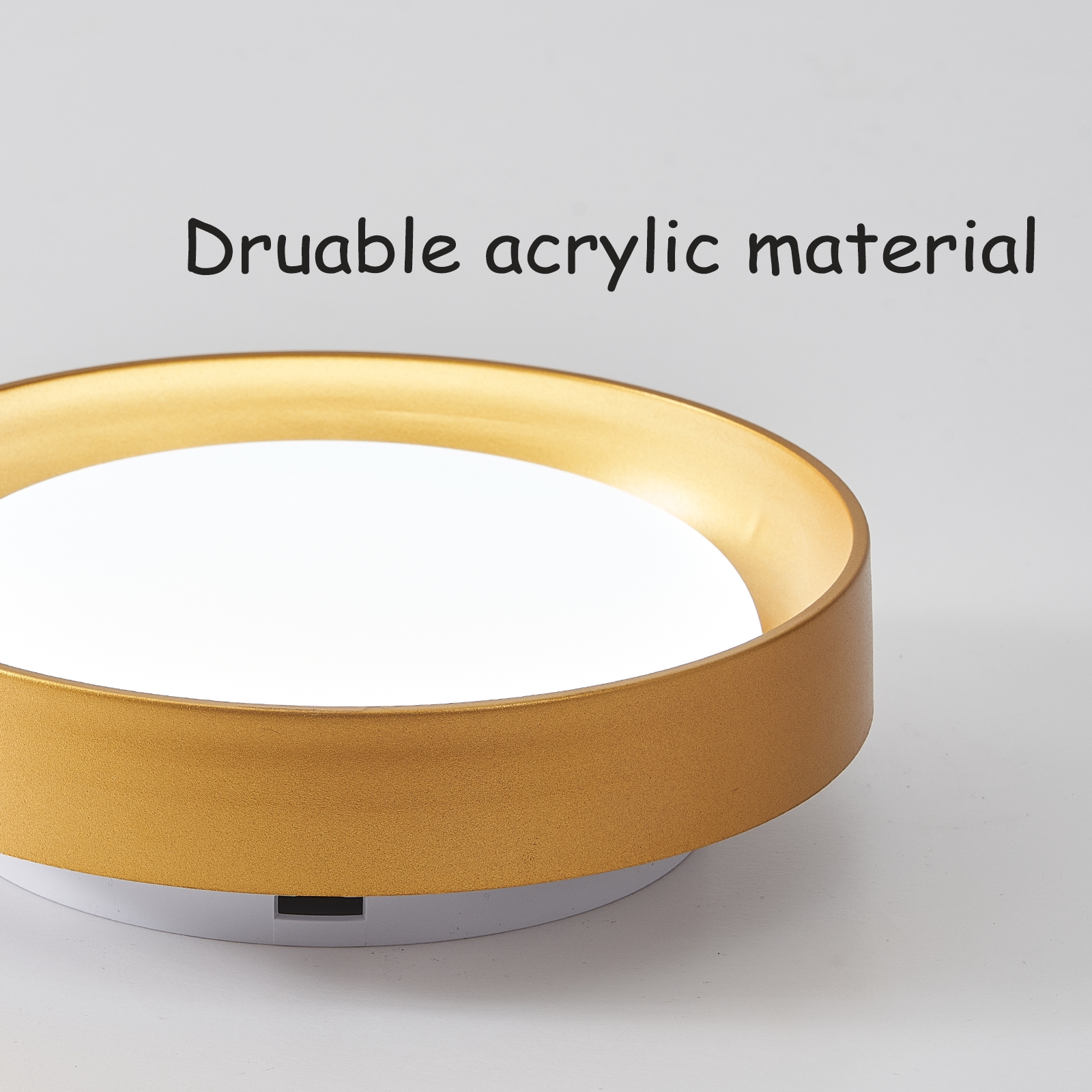 Flaunting a modern design, the LED flush mount ceiling light’s lamp body gives your living space a nice pop of sparkle with a gold finish while the lampshade flaunts a white finish. The rounded lampshade is crafted of polycarbonate while the rounded lamp body is made from ABS plastic. Its gold lamp body contrasts the white lampshade and adds alluring visual interest to the living area. Its polycarbonate lampshade allows a soft glow to pass right through, filling the space without any glare. A mix of finishes encompasses both modern-inspired qualities and a touch of geometry, yet maintains a minimalist vibe.