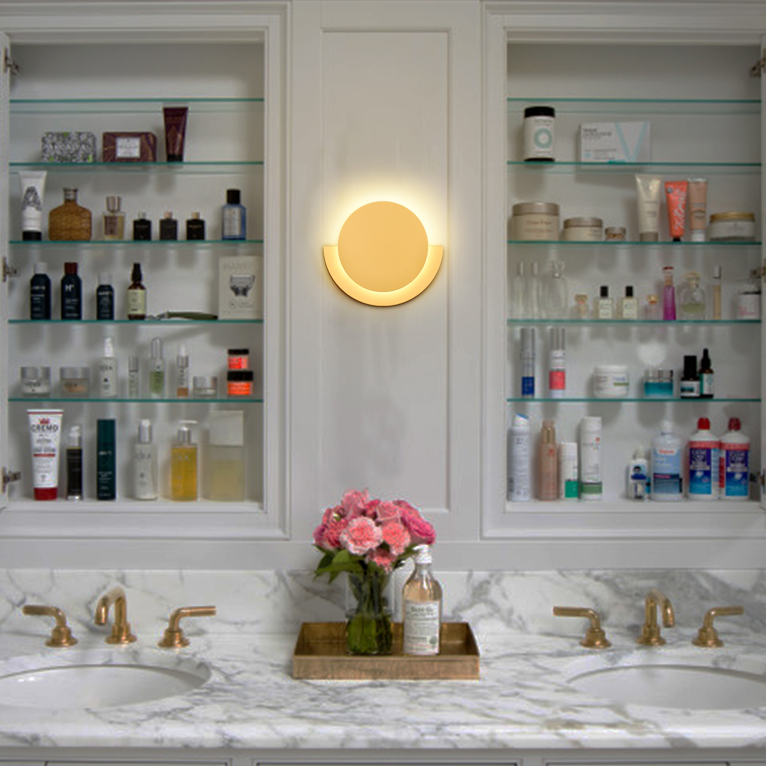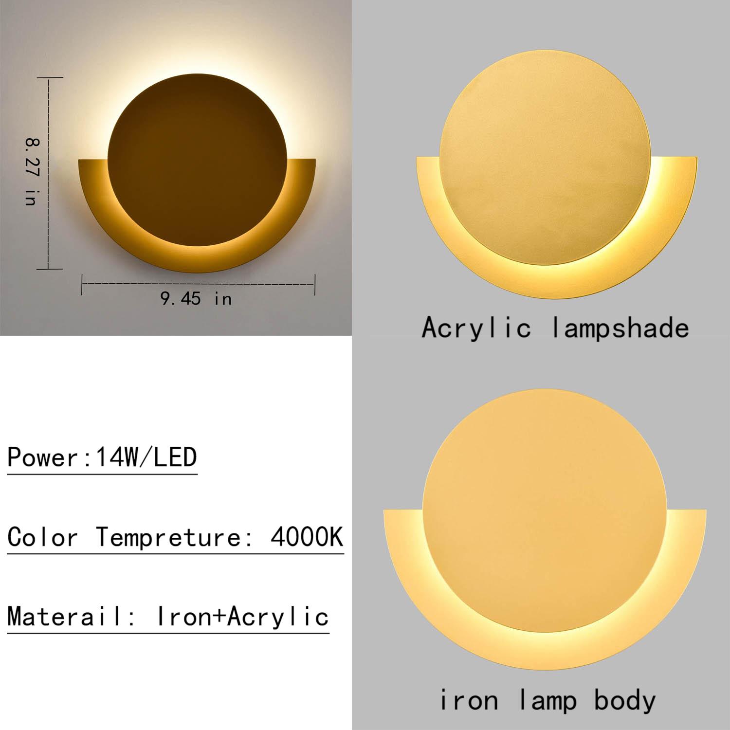 Boasting a gold finish, the gold round acrylic wall lamp brings a glint of glamour to your living space. Its rounded lampshade is perched on a gold semicircular arch, supplying a dash of drama and providing attractive eye appeal. Crafted from acrylic, the lampshade casts an enchanting aura of elegance and showcases the beauty of geometry. It comes with a constant current isolated driver power supply. Its 14W built-in integrated LED PCB cannot be replaced and no bulb is needed. It emits flicker-free light, helping you avoid eyestrain.