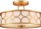 The gold semi-flush ceiling light drum fixture is a chic and versatile addition to any room. Its elegant gold finish adds a touch of luxury while the drum shade diffuses light beautifully creating a warm and inviting ambiance. The semi-flush design is perfect for spaces with standard ceiling heights offering a stylish look without compromising on headroom. Easy to install and suitable for various decor styles this fixture is an excellent choice for those looking to enhance their interior lighting with a sophisticated yet functional piece. P.S: some parts are missing and I cant buy those missing pieces online.