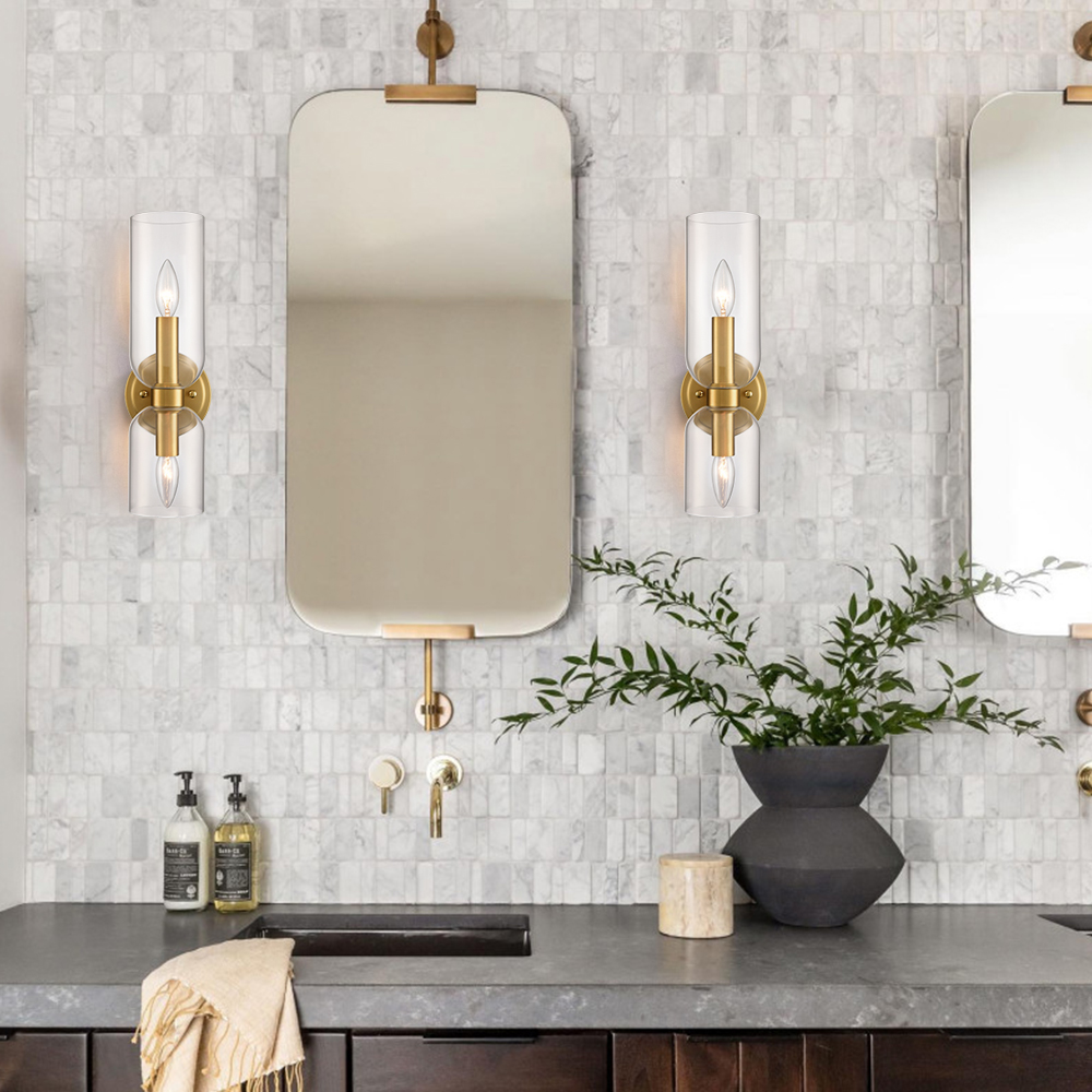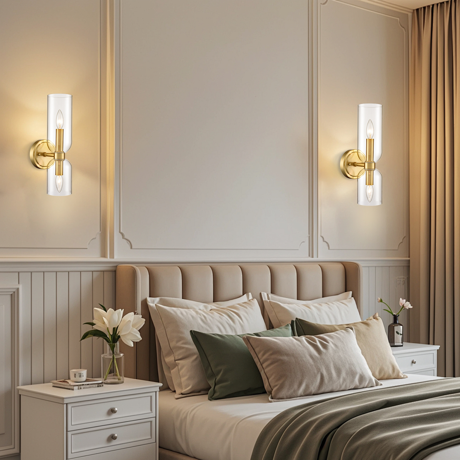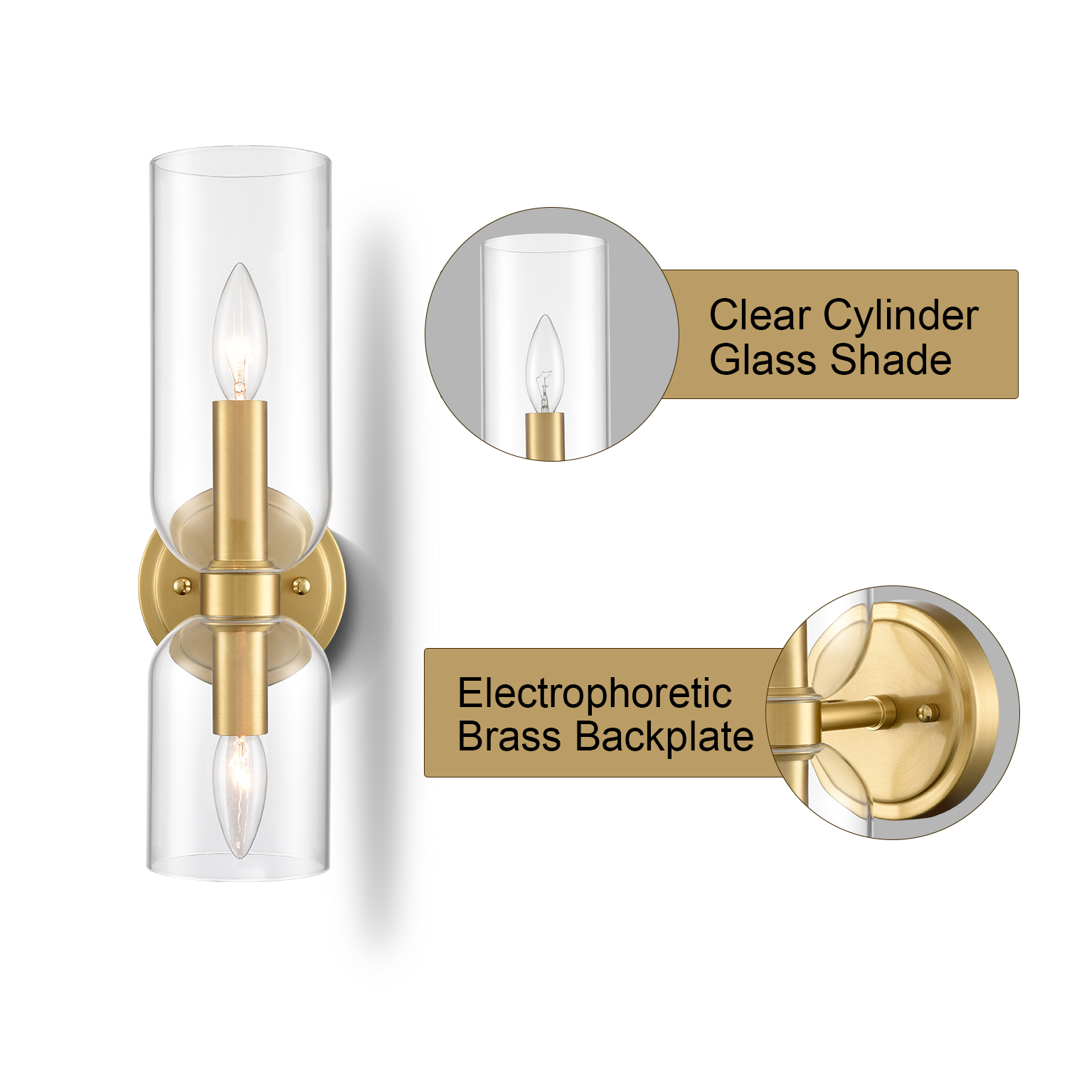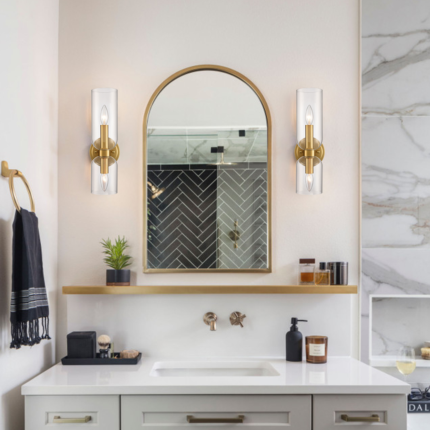 The gold wall sconces flaunt a rustproof electrophoretic gold finish, perking up your interior with a touch of shimmer. Crafted from impurity-free hand-blown glass, their clear glass shades distribute light evenly to avoid shadows. Their bow-knot-inspired design adds attractive eye appeal and unbeatable character to your interior. They show off the unique texture of double-layer electroplating and brushed metal. Their gleaming gold finish contrasts the glass shades and adds alluring visual interest to the space.