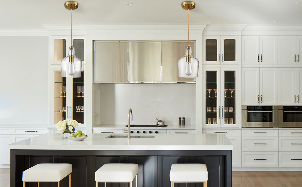 Boasting a rustproof electrophoretic brass finish, the modern pendant light revitalizes your home with a boost of sparkle and shows off the unique texture of double-layer electroplating and brushed metal. Crafted of impurity-free hand-blown glass, the modern pendant light’s bell shade gives your interior a hint of an industrial feel. With excellent light transmittance, its clear glass lampshade distributes light evenly to avoid shadows. It is slope-ceiling adaptable and its lamp holder comes with an adapter. Feel free to adjust the lamp holder horizontally to suit your different lighting needs.