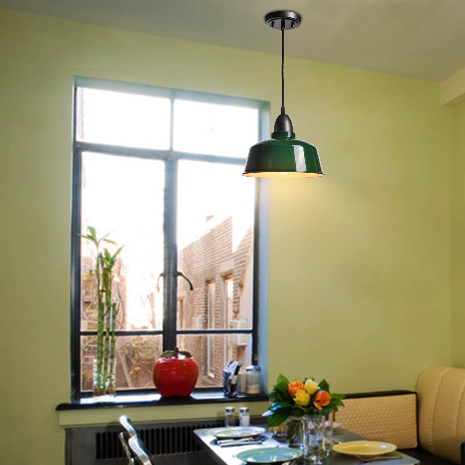 The green pendant light fixture’s canopy and lamp holder are coated in a dark gray finish while its barn shade flaunts a green finish. Its mix of finish encompasses both a dash of drama and a touch of rusticity, yet maintains an industrial edge. Its green lampshade gives your home a snappy look and a glamorous, refreshing vibe. It sports a durable green finish and a barn shade to bring a bit of factory-inspired elements to your living space. Its dark gray finish offers a stark contrast to the green finish and adds alluring eye appeal to the interior. It comes with a 47.24-inch adjustable black fabric cord.