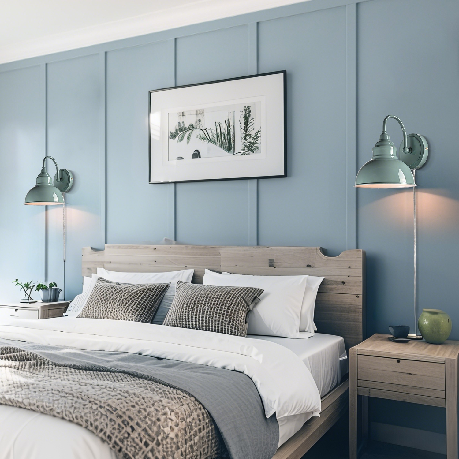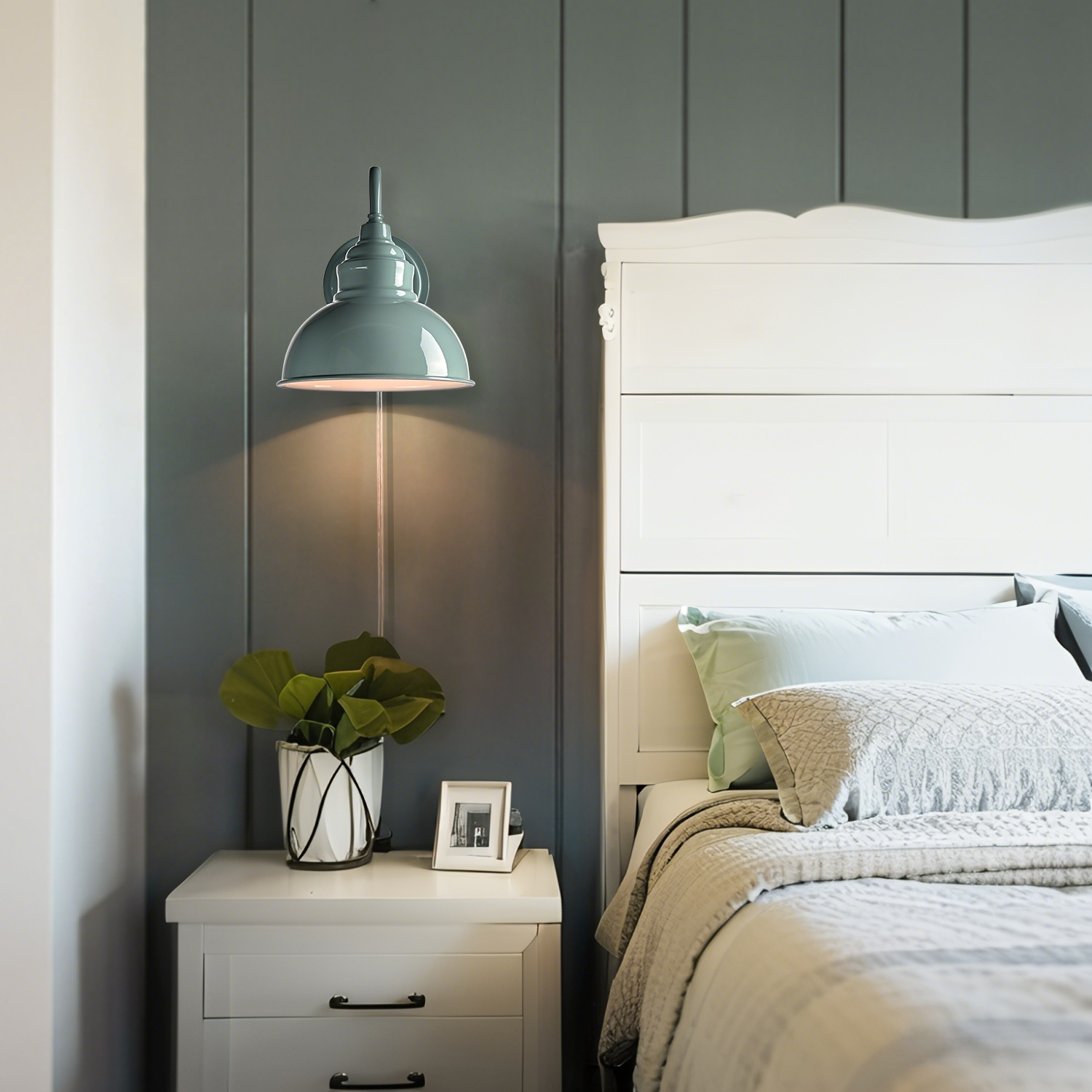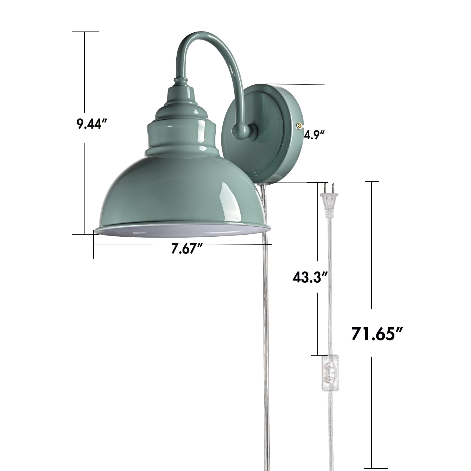 Boasting a rustproof green finish, the modern gooseneck wall sconce brings a touch of modern sophistication to your living space. The wall light’s dome shade shows off a white finish on the inner surface. The white interior of the dome shade helps reflect the light. A mix of finishes encompasses both a dash of drama and a touch of modernity, yet maintains an industrial edge. Its green dome shade rounds out the design and elevates your interior with a touch of geometry. Its green finish gives your home a snappy look and a glamorous, refreshing vibe. Its green finish offers a stark contrast to the white finish and adds alluring eye appeal to the space. It comes with a 71.65-inch plug-in cord to suit your lighting needs.