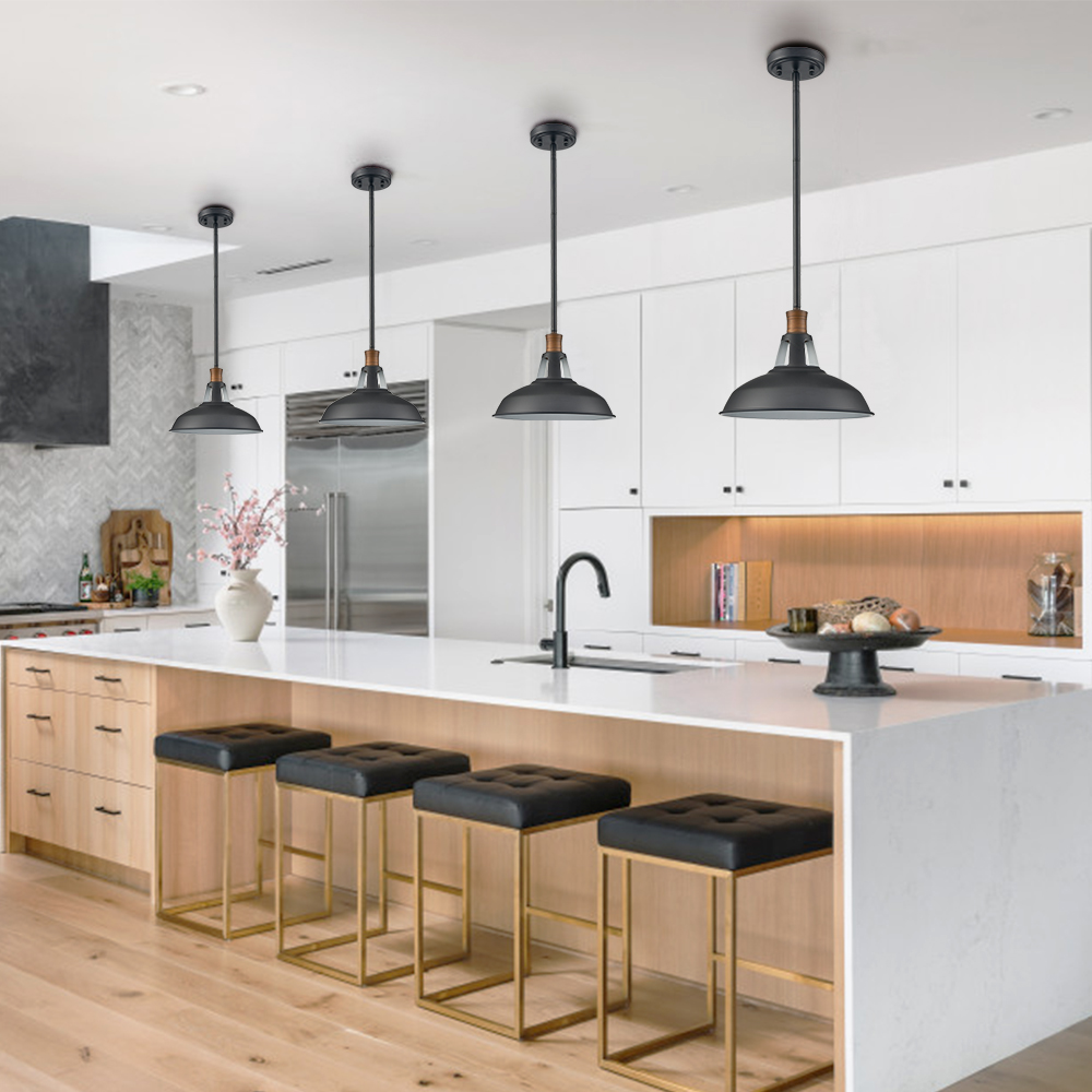 The industrial black barn pendant light features 1 E26-base socket which is compatible with a variety of bulb types: LED, INCANDESCENT, CFL.