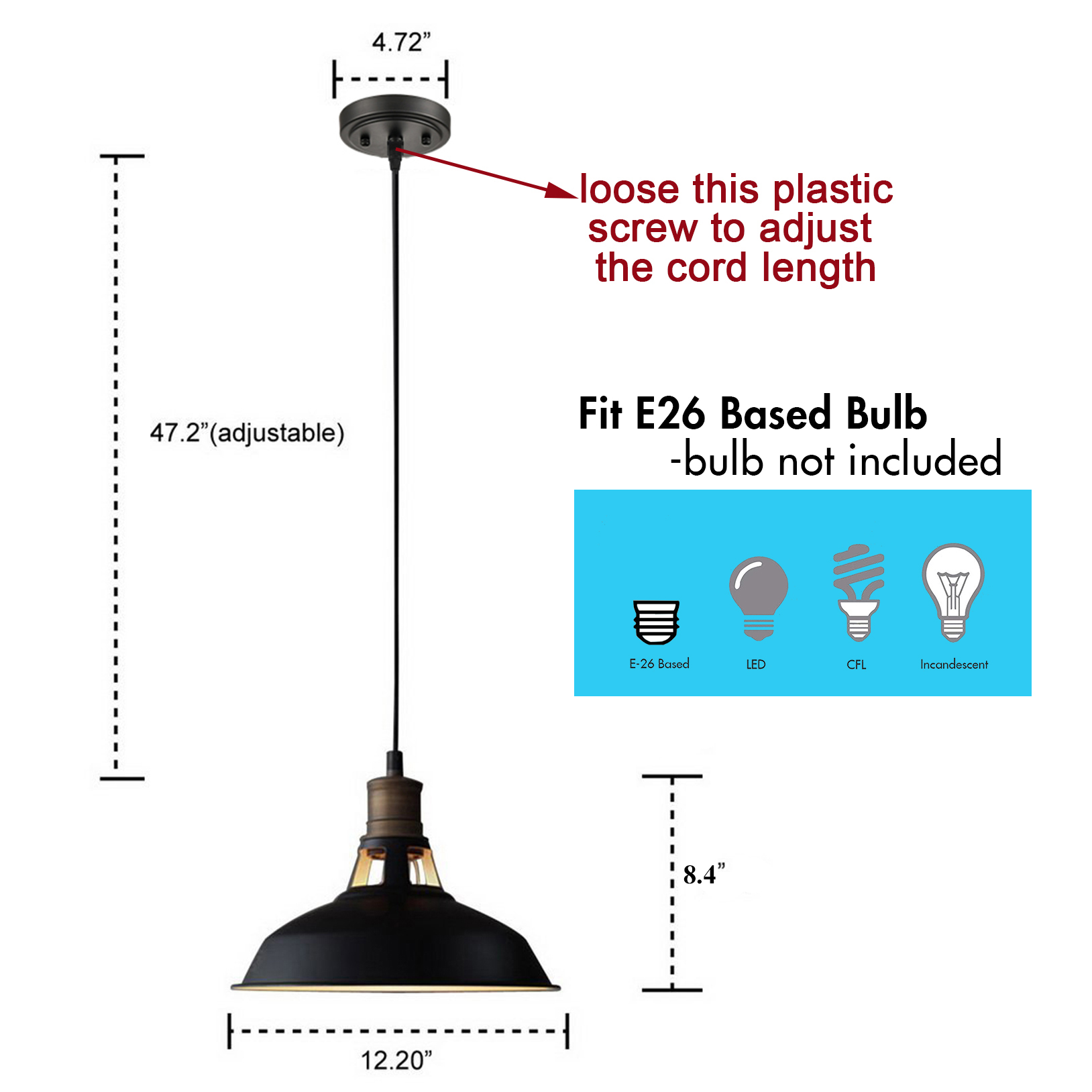 The set of metal pendant lights comes with 3 E26-base sockets which are compatible with a variety of bulb types: LED, INCANDESCENT, CFL.