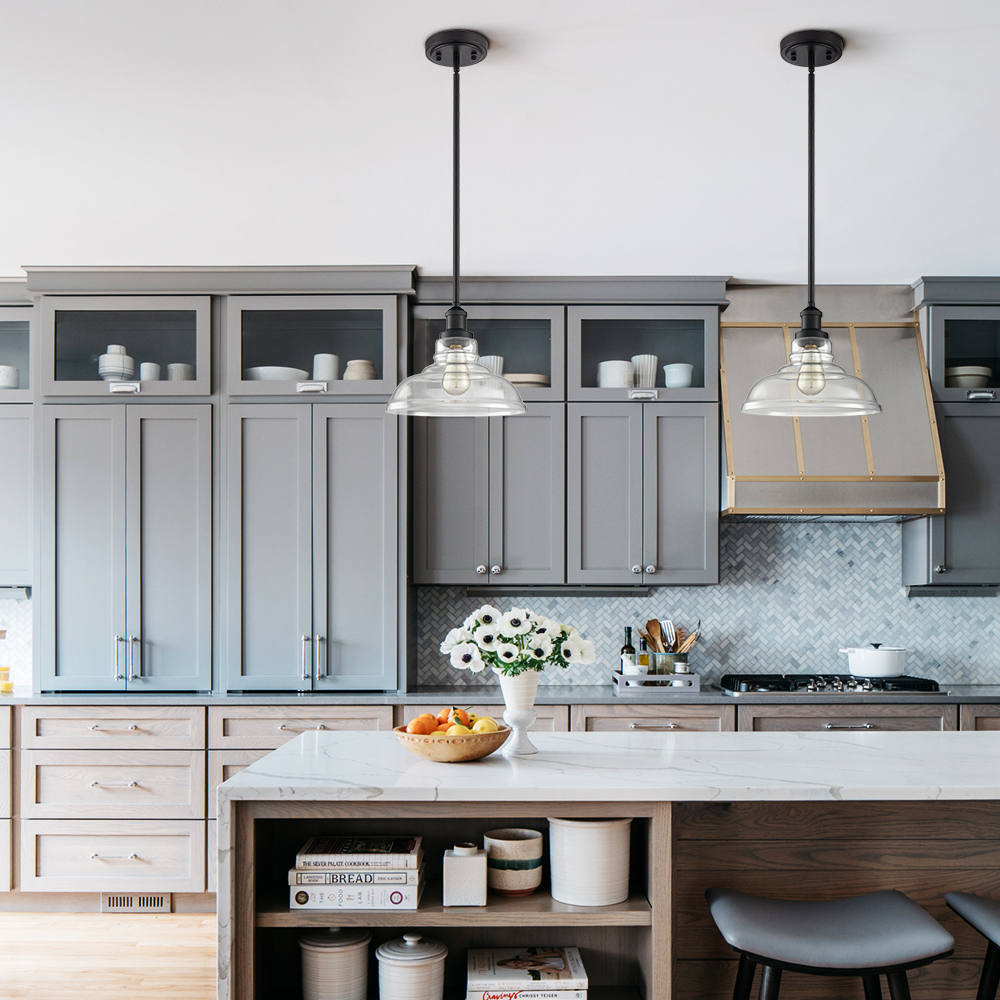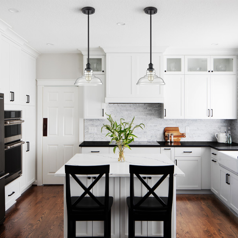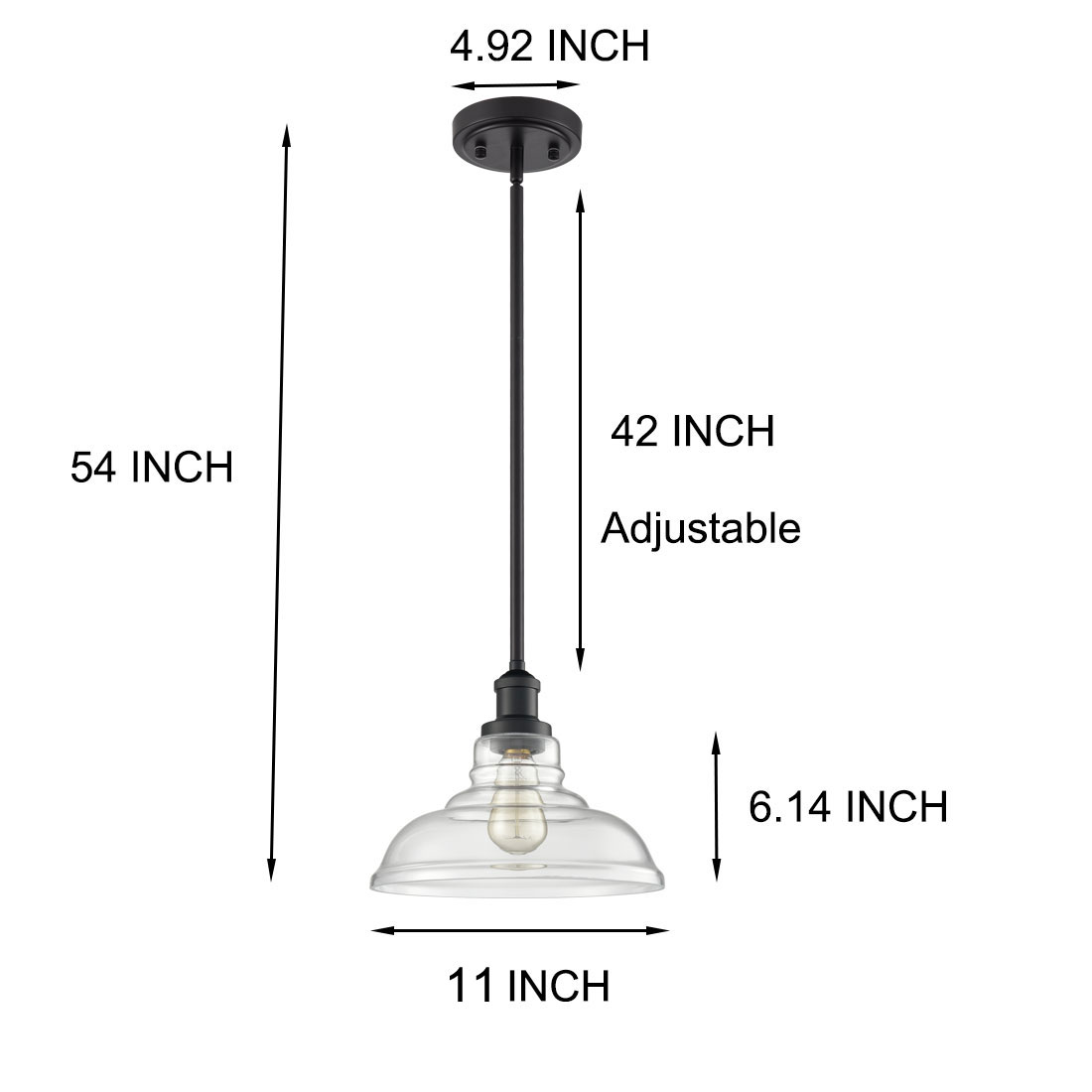 The pendant light’s canopy, rod and lamp holder deliver a touch of sparkle to your home decor with an classic black finish. Crafted of impurity-free ultra-clear hand-blown glass, its dome shade injects an industrial-inspired charm into your interior.
