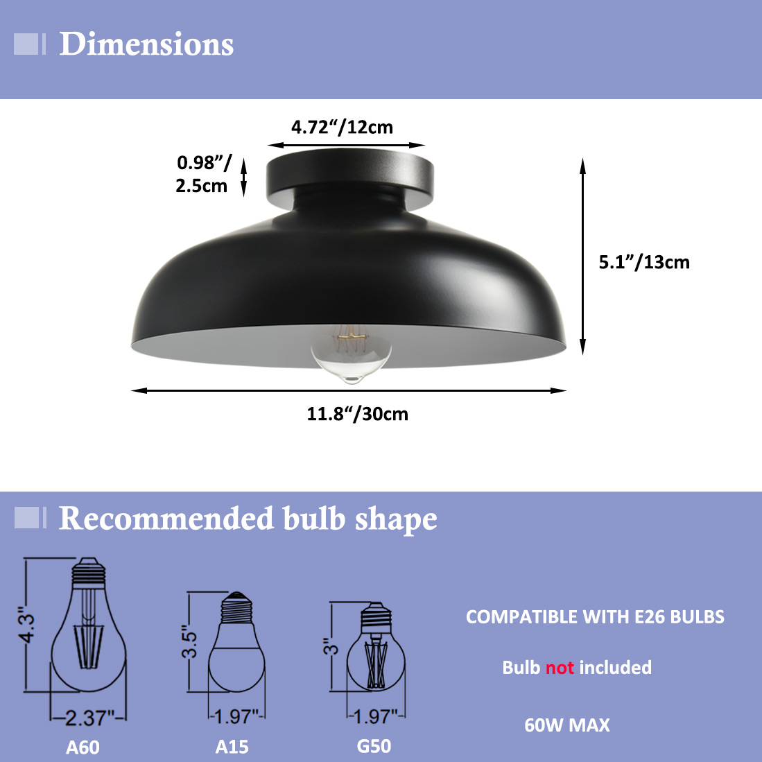 The ceiling light comes with one E26-base socket which is compatible with a variety of bulb types: LED, INCANDESCENT, CFL.