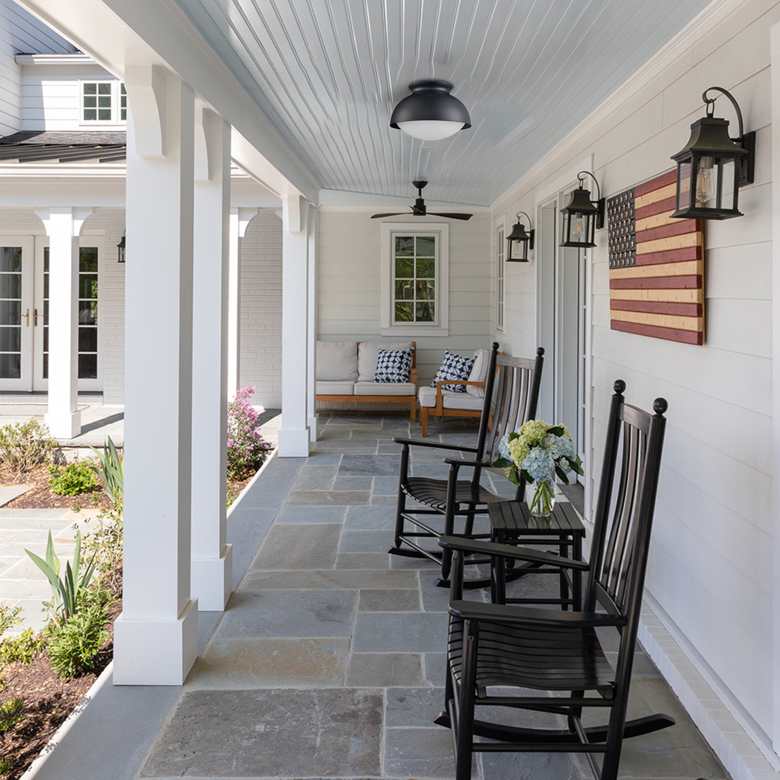 The flush mount ceiling light’s canopy and outer metal dome shade boast a rustproof semigloss black finish, giving your living space a touch of urban sophistication. Crafted of hand-blown milk glass, its inner glass dome shade rounds out the design and elevates your interior with a graceful touch. It doubles up on the dome shades, creating layers of nuanced light. Its inner milk glass shade is encircled and protected by a bigger black metal shade, boasting elegant geometry and adding a ton of eye appeal to the scene. It has all the style, charisma, and drama required to make everyone stand still to stare and appreciate.