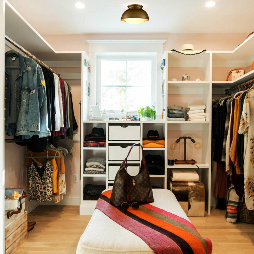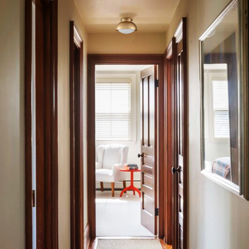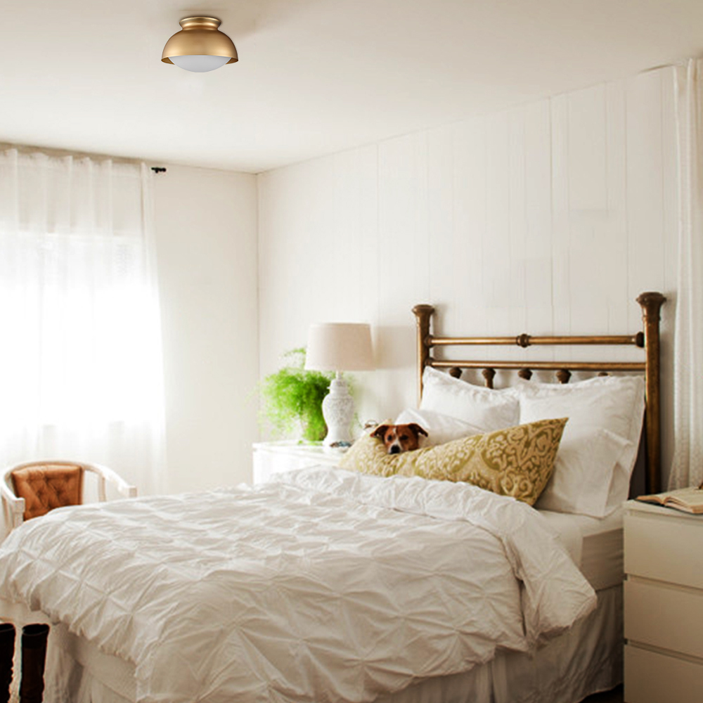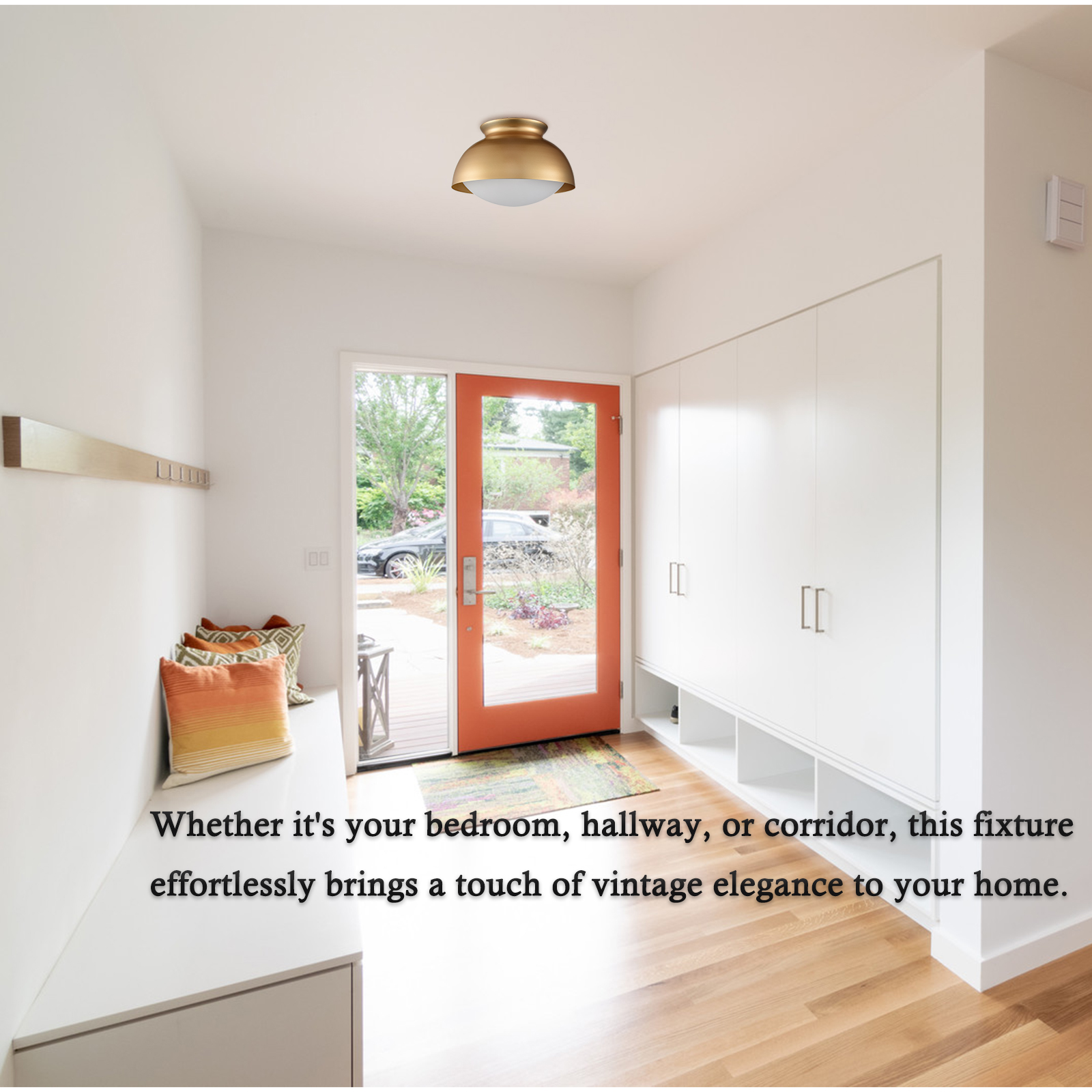 The flush mount ceiling light’s canopy and outer metal dome shade boast a rustproof gold finish, enlivening your interior with a glint of glamour. Crafted of hand-blown milk glass, its inner glass dome shade rounds out the design and elevates your interior with a graceful touch. It doubles up on the dome shades, creating layers of nuanced light. Its inner milk glass shade is encircled and protected by a bigger gold metal shade, boasting elegant geometry and adding a ton of eye appeal to the scene. It has all the style, charisma, and drama required to make everyone stand still to stare and appreciate.