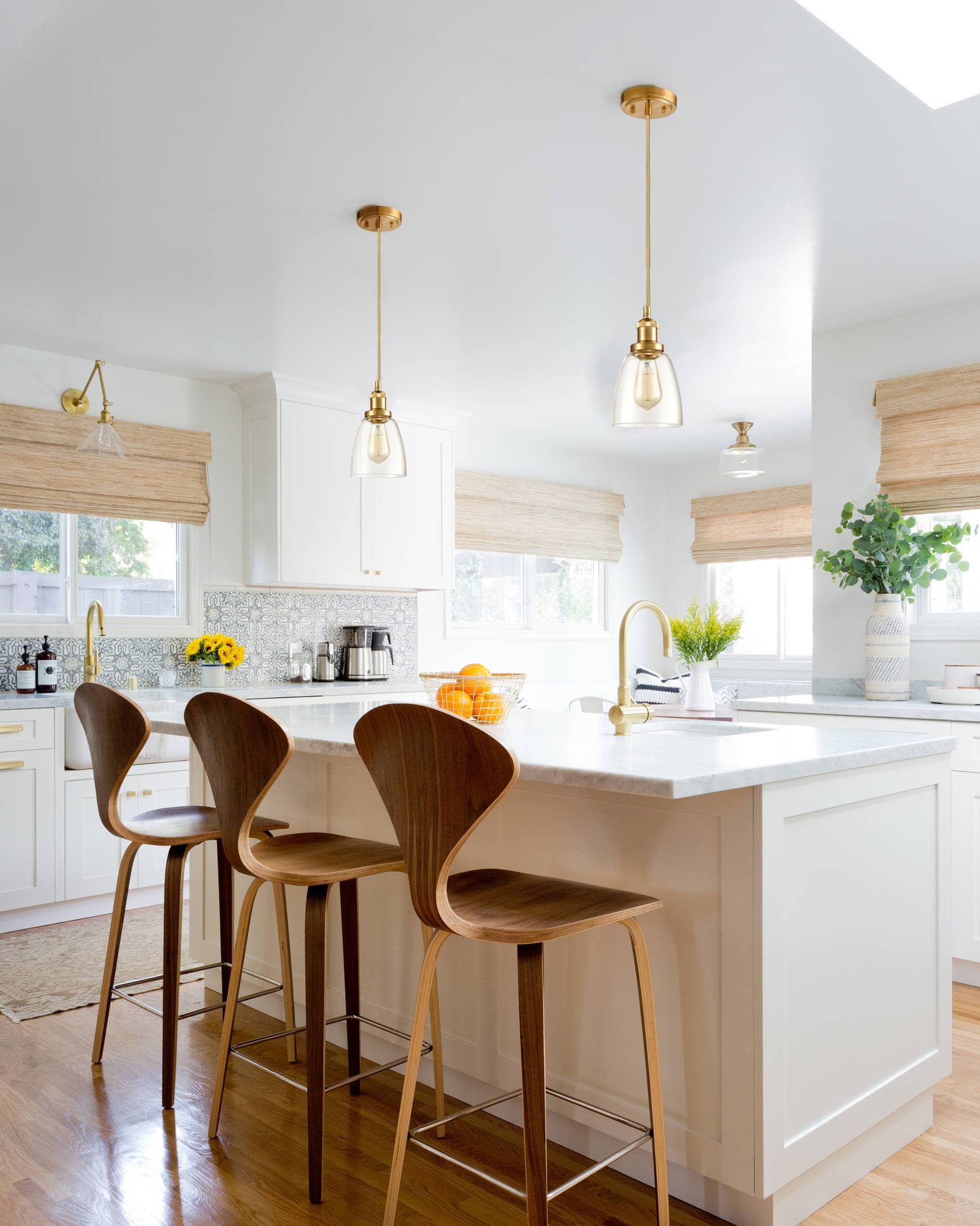 With a small bell shape blown glass and golden fabric cord hung, the gold pendant lighting for kitchen island is a great addition of modern farmhouse flairs and works great illuminating, gold finish makes it easy to match in any style of decor