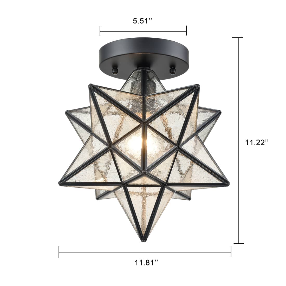 Industrial Moravian Star Ceiling Light with Seeded Glass 12 inches