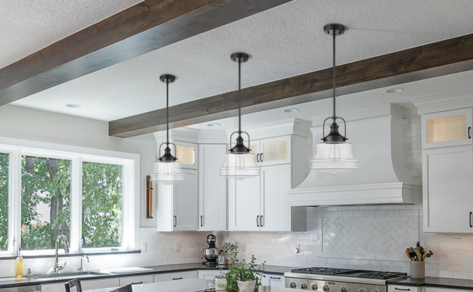 The Farmhouse Pendant Light is absolutely beautiful. We couldn't be more please with how well it went with the house. It was very easy to install. We bought the 3-light one to hang in the kitchen. Very happy with our purchase.