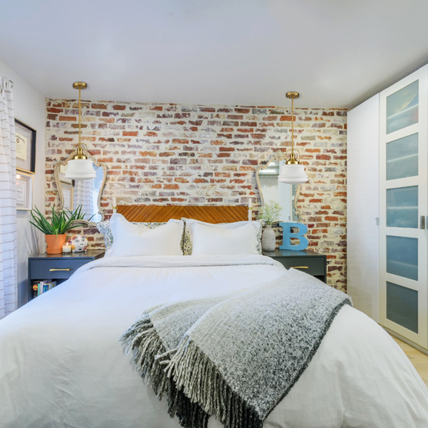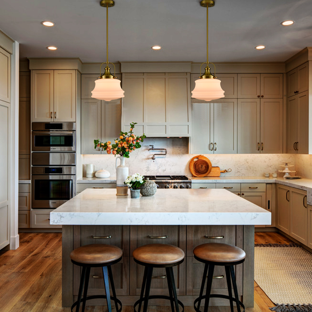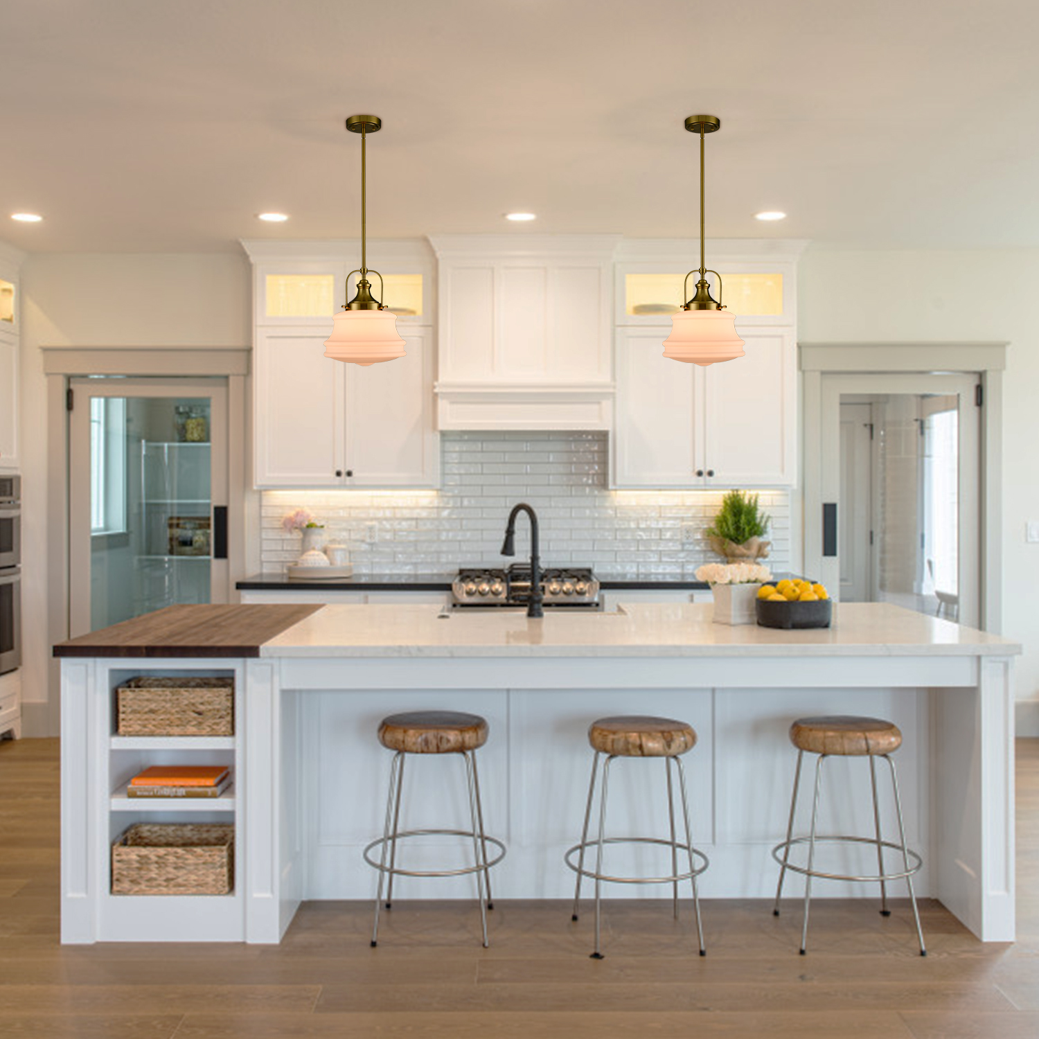 The schoolhouse hanging adjustable light’s canopy, hanging rods, arms, and lamp holder are accented with a rustproof electrophoretic brass finish, perking up your interior with a touch of shimmer. Crafted of impurity-free hand-blown milk glass, its schoolhouse-inspired lampshade looks like a special drum shade with soft curves. Being a beautifully detailed glasswork, it generates an understated look that will impress. Its canopy features an adapter to accommodate sloped ceilings. It comes with three 12-inch rods and one 6-inch rod to suit your different lighting needs.