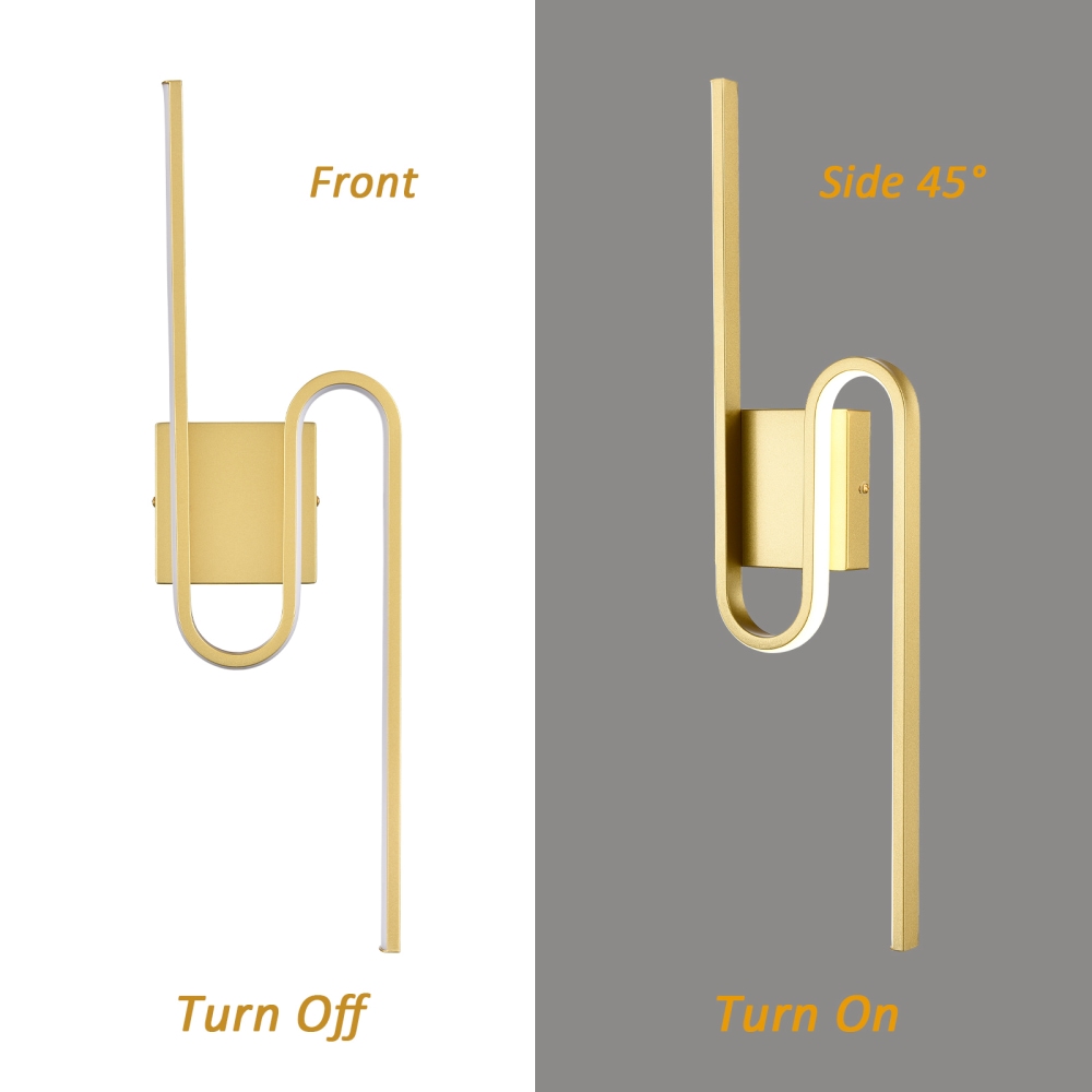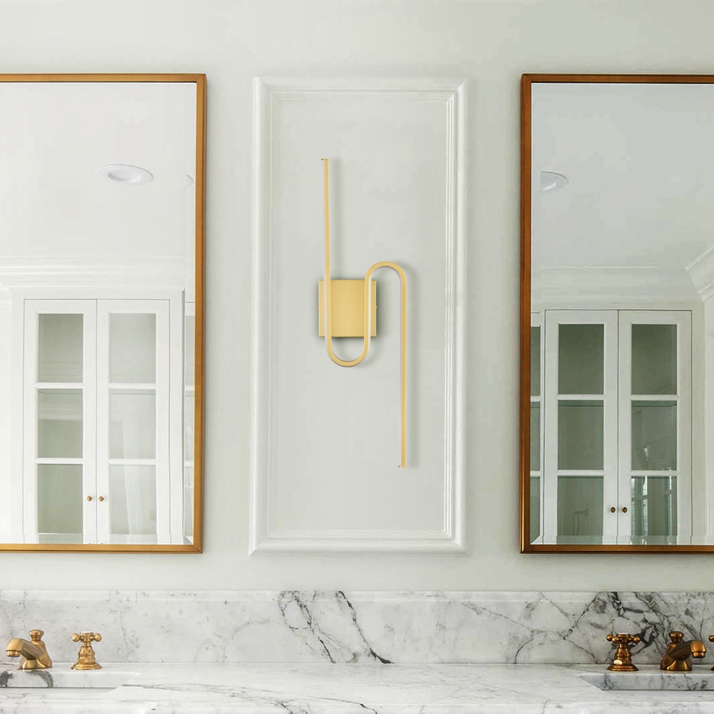 Flaunting a gold finish, the LED sconce adds a metallic pizzazz to your interior. It shows off a simple but edgy design as an energy-efficient wall light. A silicon bar is curved up to present an S-shaped silhouette, showing off a minimalist yet whimsical look. It offers a surprising twist and supplies a dash of drama without overpowering the rest of the space. A charming glow shines through the light, filling the space without any glare. It is flicker-free and is able to serve as a light source for all your lighting needs.