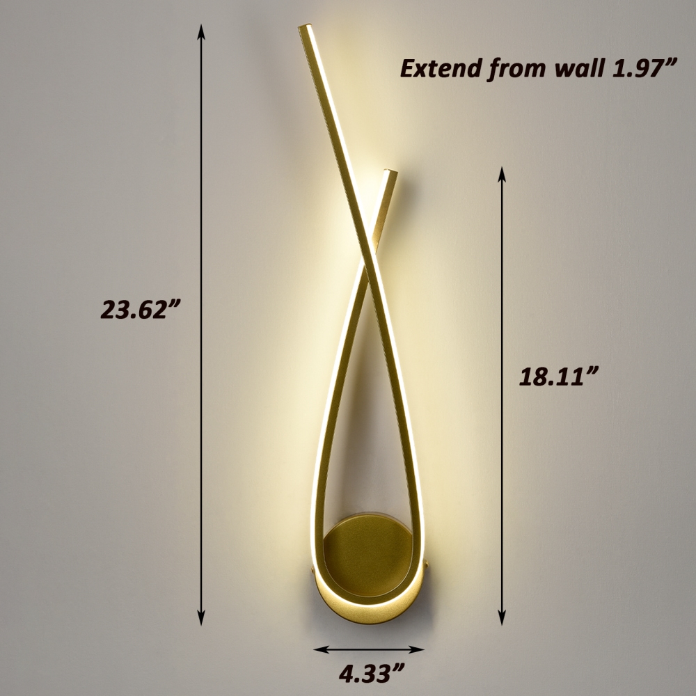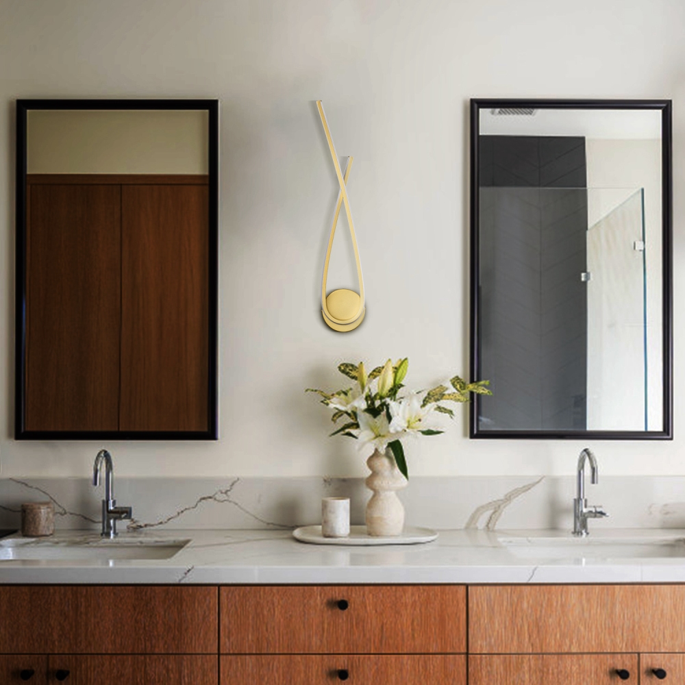 Flaunting a gold finish, the LED vanity light adds a nice pop of sparkle to your interior. It shows off a simple but edgy design as an energy-efficient wall light. A silicon bar is curved up to present an intersecting silhouette, showing off a minimalist yet whimsical look. It offers a surprising twist and supplies a dash of drama without overpowering the rest of the space. A charming glow shines through the light, filling the space without any glare. It is flicker-free and is able to serve as a light source for all your lighting needs.