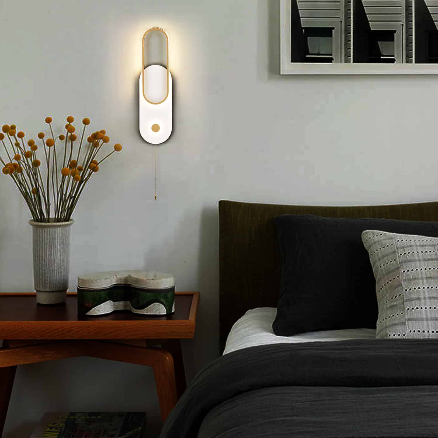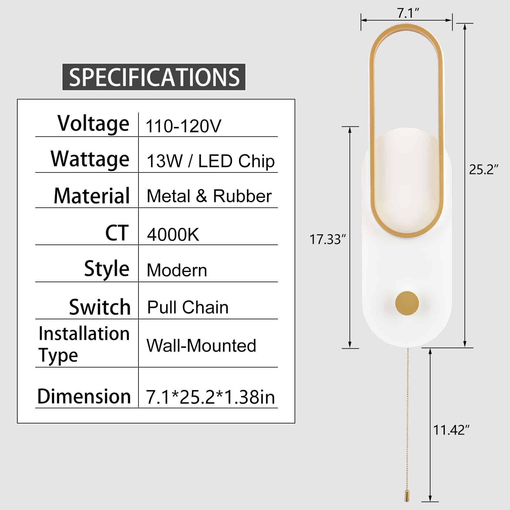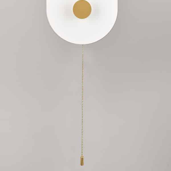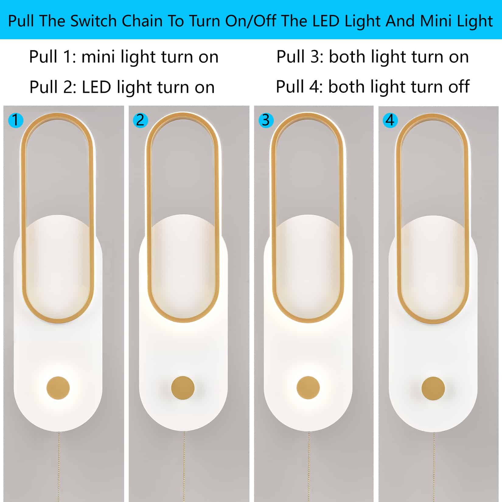 Boasting mixed finishes of white and gold, the LED wall sconce conveys a cool air of sophistication and a glint of glamour to your living space. Crafted from metal and silicon, the lamp body shows off two overlapping ovals and the beauty of geometry. It supplies a dash of drama and gives the space a touch of whimsy. It comes with a constant current isolated driver power supply. It emits a soft glow of flicker-free light, creating intriguing light effects and shades. The pull chain switch (without a dimming function) allows you to turn on/off the wall sconce and the night light easily.