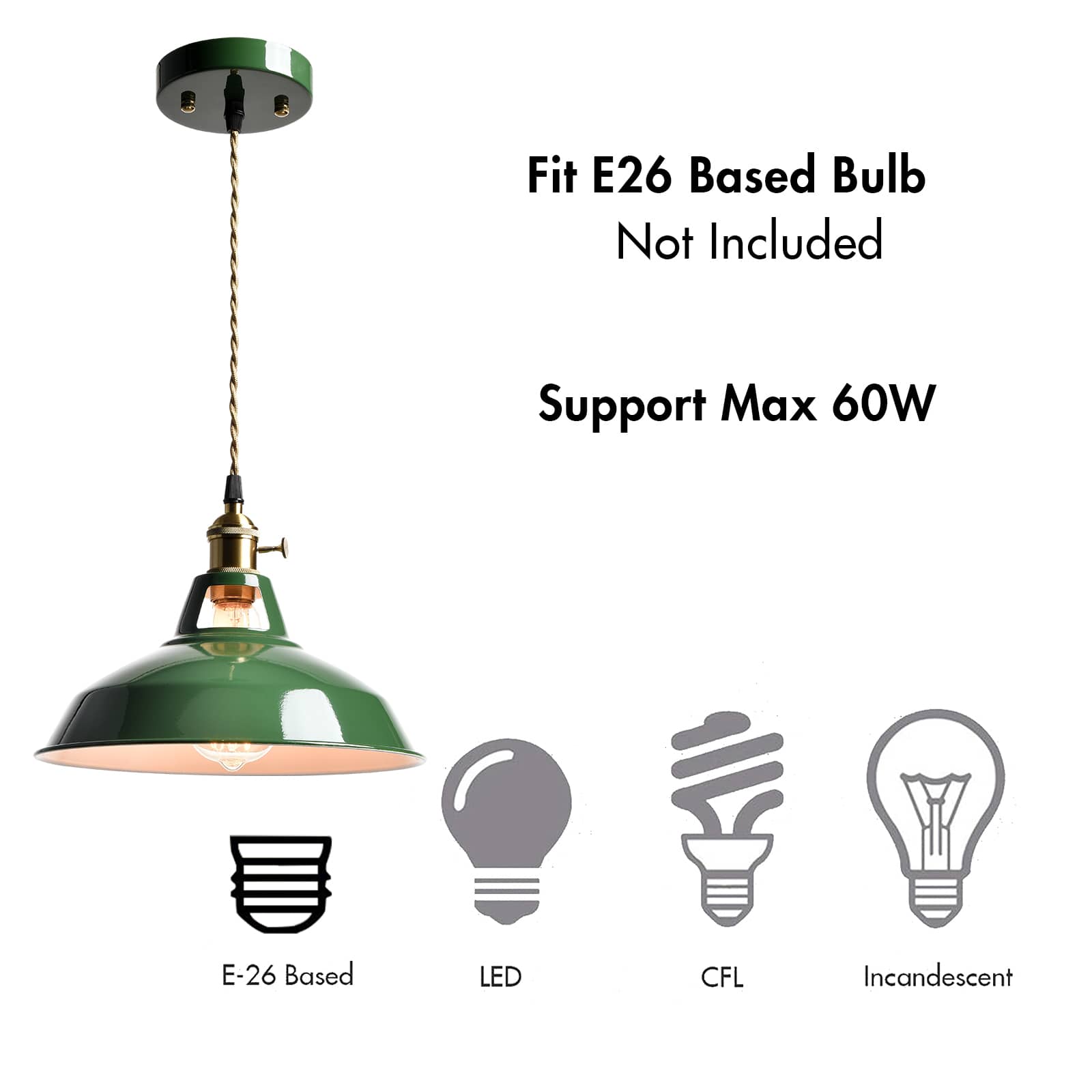 The pendant light fixture comes with one E26-base socket which is compatible with a variety of bulb types: LED, INCANDESCENT, CFL.