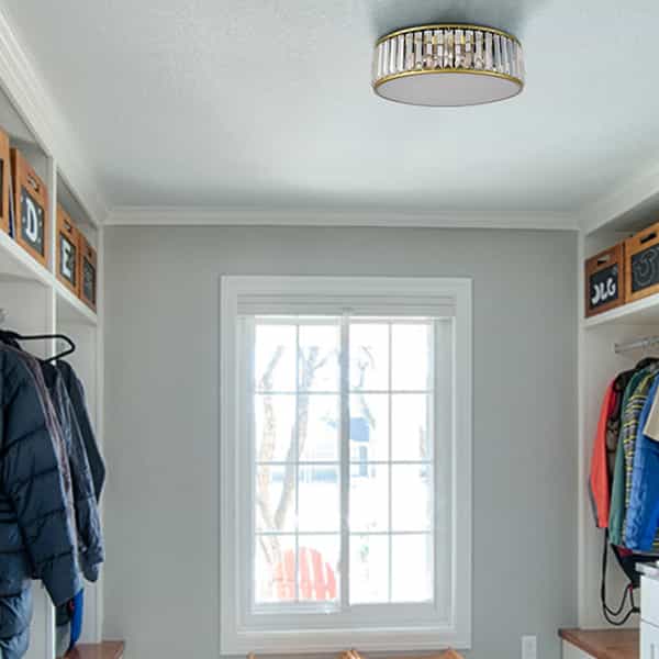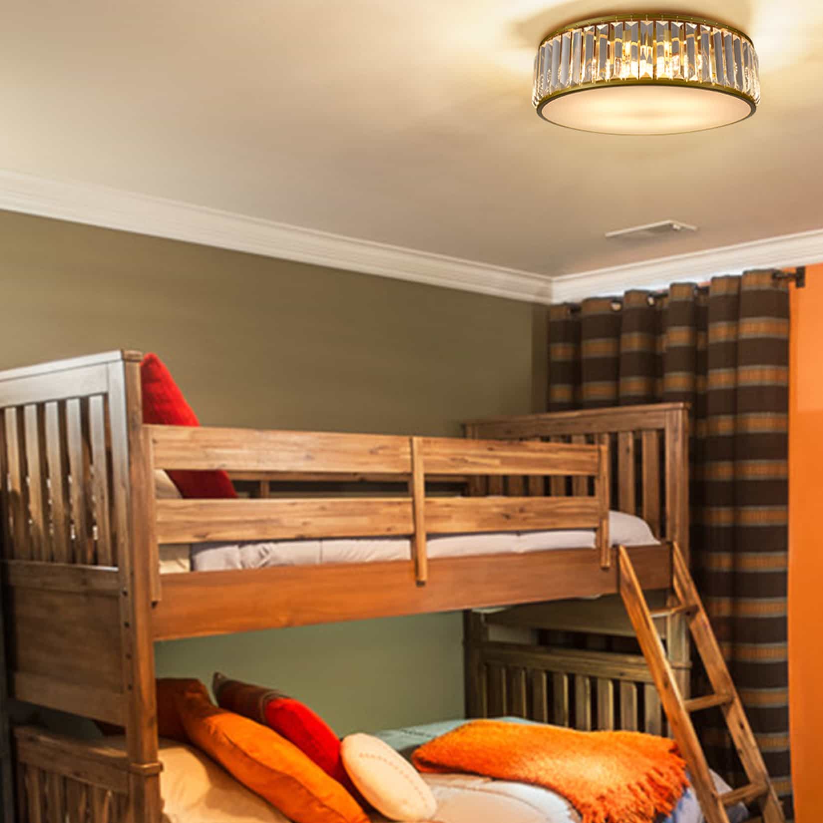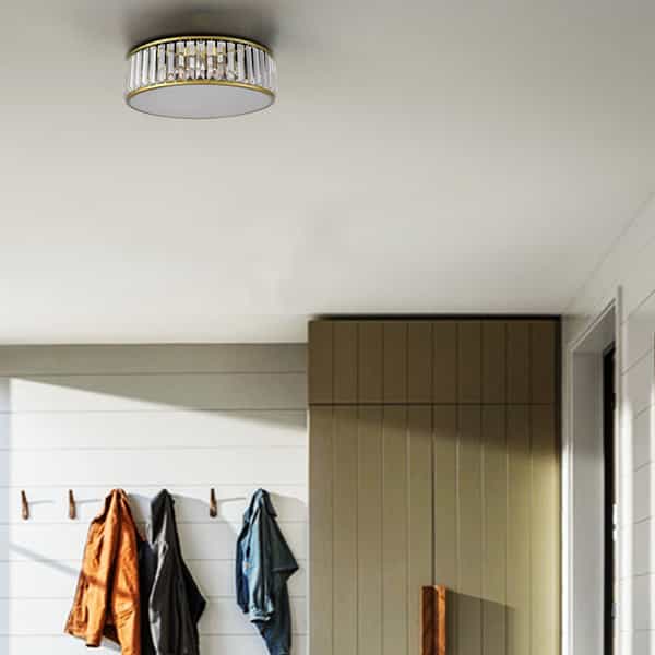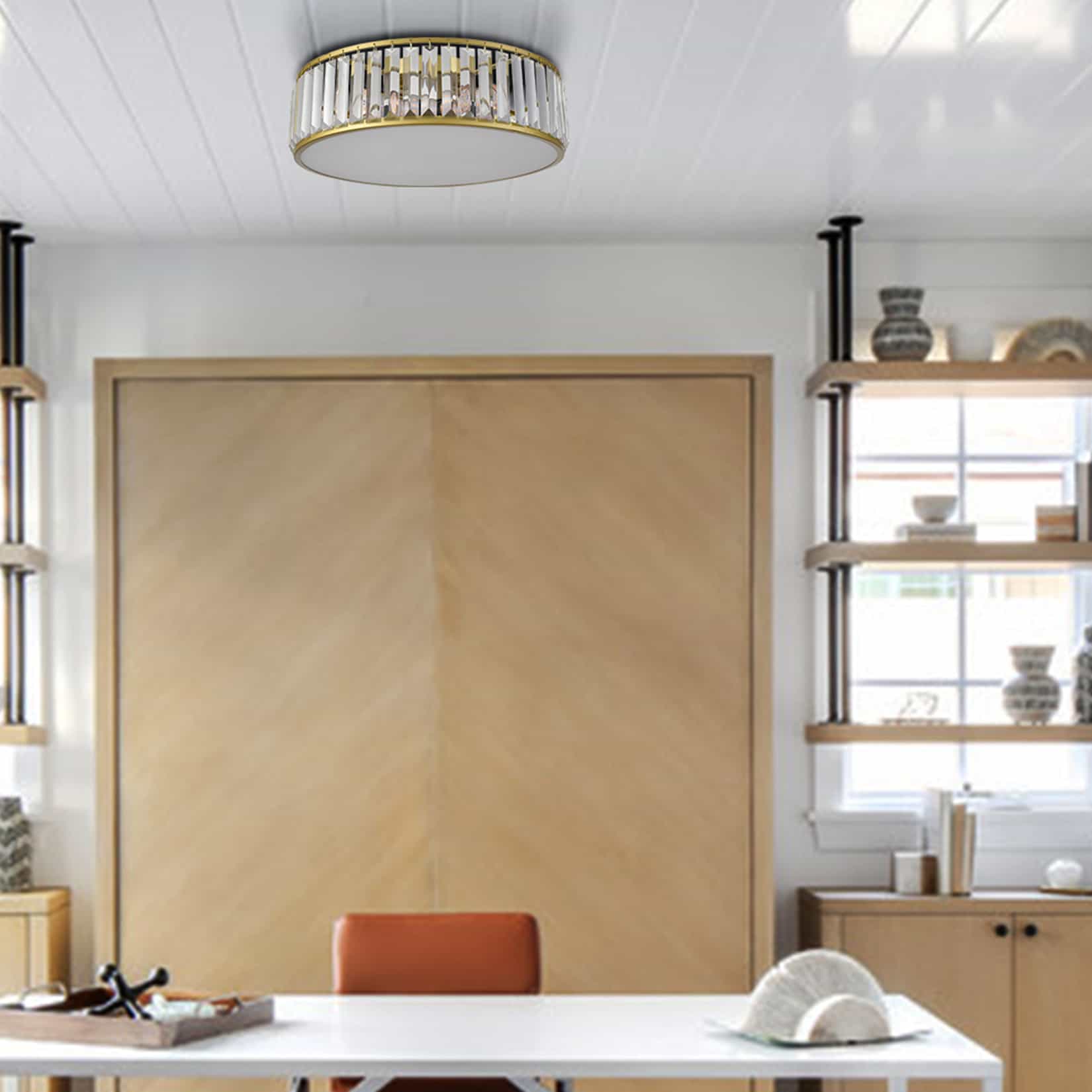 The modern 4-light crystal ceiling light is sure to draw the eye upward and adds glitzy sparkle to the space with its breath-taking gold finish. It sports a rounded drum shade decorated with angular K9 crystal prisms. Offering a surprising twist, it delivers a huge dose of contemporary sparkle and a luxurious touch to your interior. It casts gorgeous light rays throughout your space while the light bounces and reflects off the crystal prisms to create bright, intriguing light effects and shades. Its gleaming finish contrasts the airy crystal drum shade and serves as eye candy. It is a show-stopping addition to your home with its crystal accent.