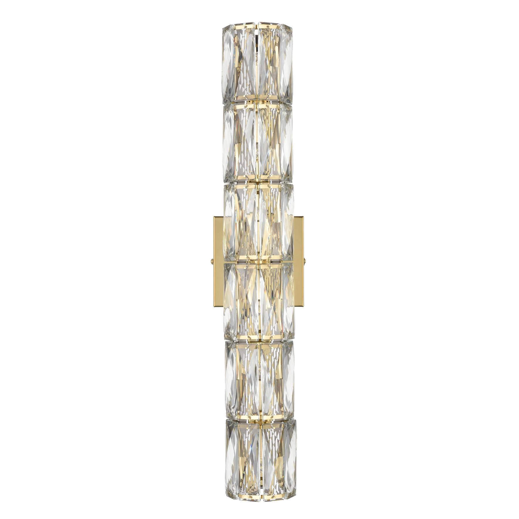 The gold wall sconce sports a titanium gold finish, bringing a dash of metallic glitz to your living space. A myriad of faceted crystal prisms are put together to form a cylinder curtain of crystals that wraps around six bulbs. Offering a surprising twist, it delivers a huge dose of contemporary sparkle and luxurious touch to your interior. Its cylinder crystal lampshade draws the eye upward to a beautiful display of crystal and stainless steel. It catches the light to create a beautiful dazzling effect as well as provide generous ambient illumination to your living space. It has all the style, charisma, and drama required to catch everybody’s eyes.