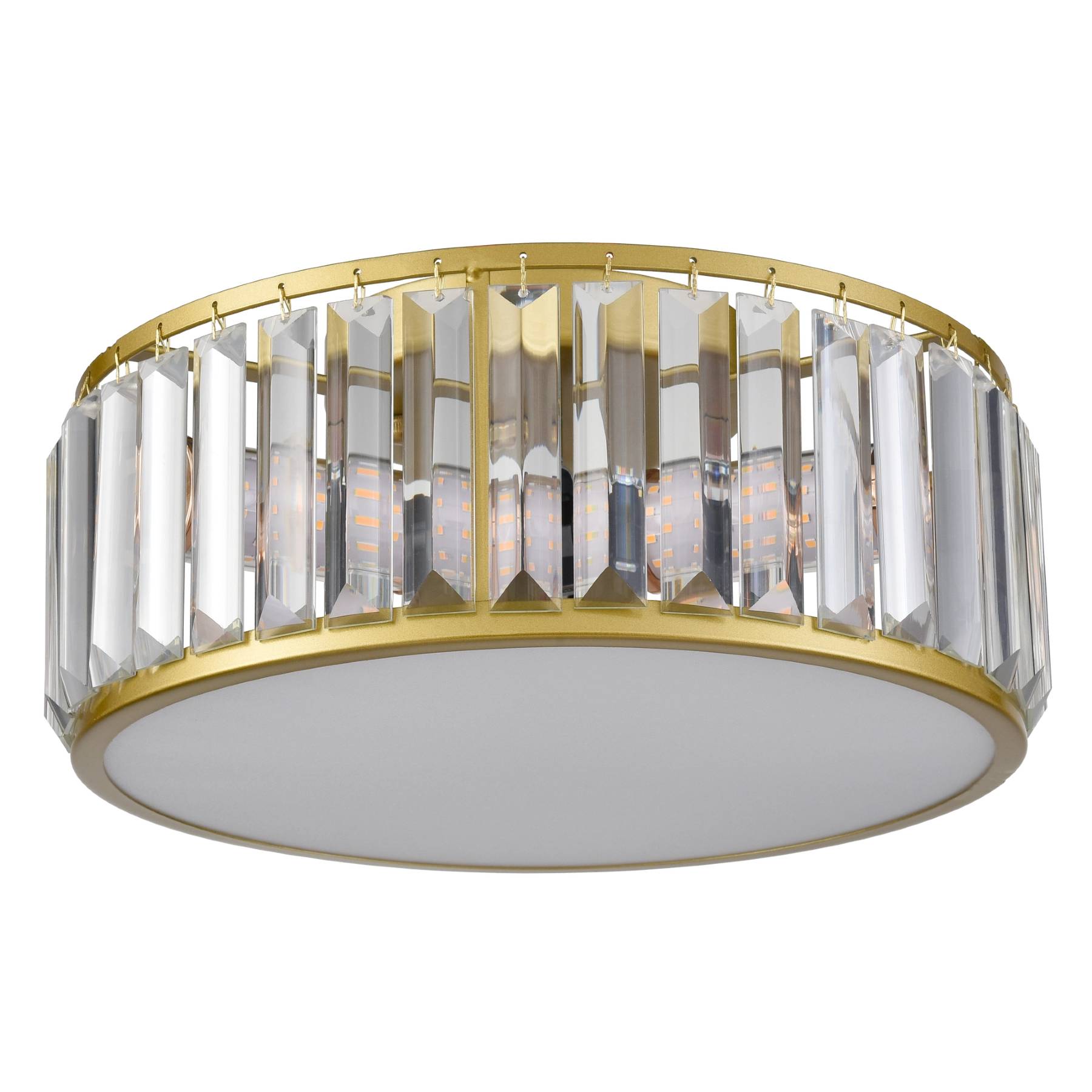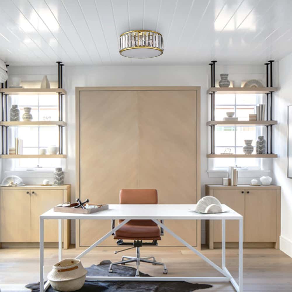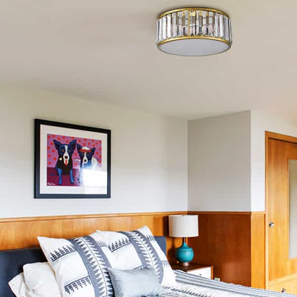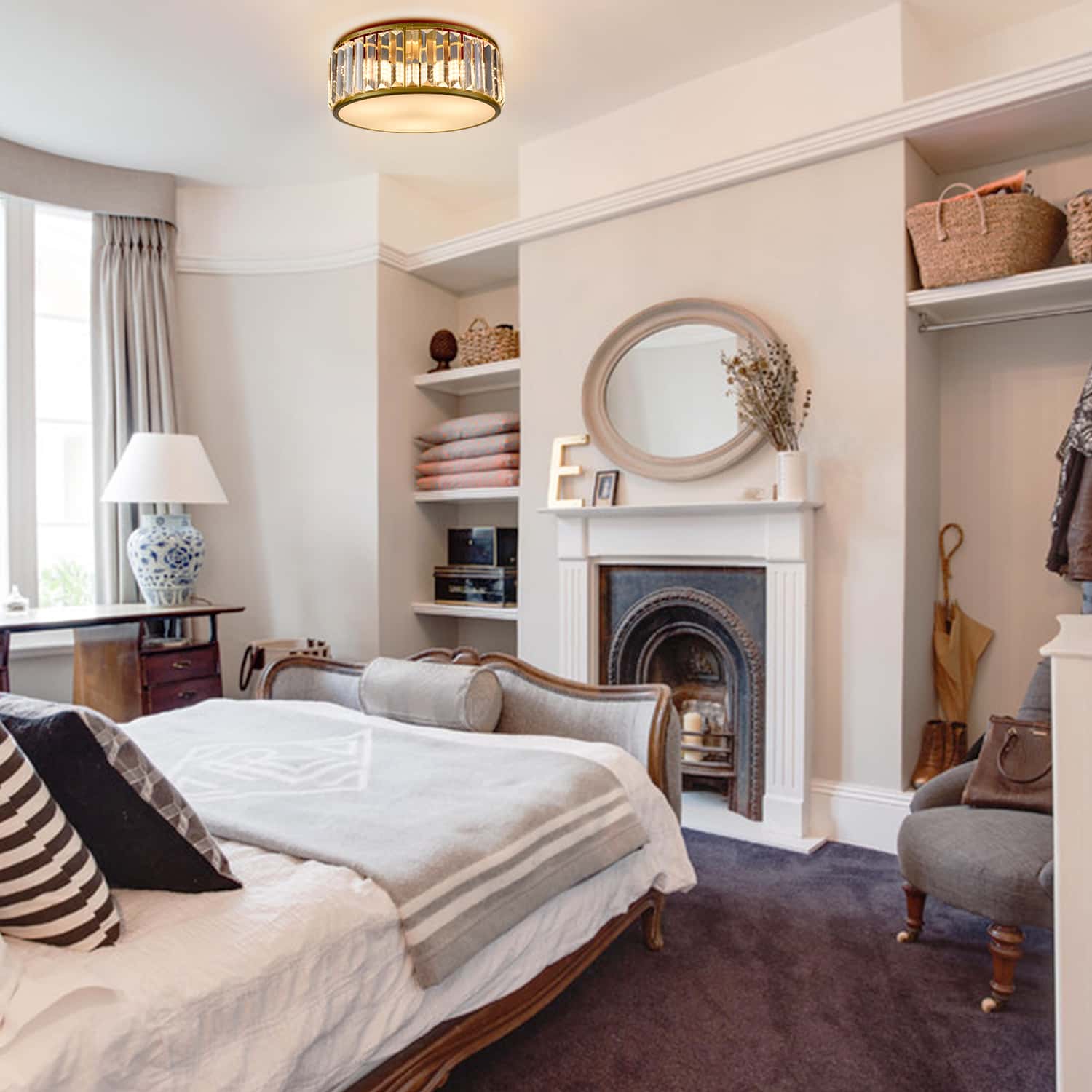 The flush mount gold 3-light ceiling light fixture is sure to draw the eye upward and adds glitzy sparkle to the space with its breath-taking gold finish. It sports a rounded drum shade decorated with angular K9 crystal prisms. Offering a surprising twist, it delivers a huge dose of contemporary sparkle and a luxurious touch to your interior. It casts gorgeous light rays throughout your space while the light bounces and reflects off the crystal prisms to create bright, intriguing light effects and shades. Its gleaming finish contrasts the airy crystal drum shade and serves as eye candy. It is a show-stopping addition to your home with its crystal accent.