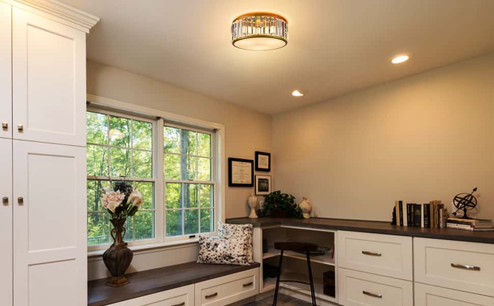 Looks so much prettier up than in the seller’s photographs. I put it in the bedroom hallway, which had an ugly dark fixture from the former owner. This ceiling light certainly brighten up the hallway. It casts a nice light and with a dimmer you can set it to your liking. The bulbs are not included, but everything else is there. Mounting and assembly works best by following the instructions, as advised by a reviewer. I know it’s hard to read the instructions first, but it worked out well. The seller’s description is accurate. I love this ceiling light.