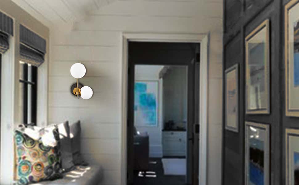 The globe wall sconce with black-brass finish and globe opal glass shade, providing flicker-free lighting and modern decor to your living space. It brings eye appeal to the space and serves as a statement piece for gracing your bathroom, bedroom, entryway, exterior, hallway, living room, and stairway.
