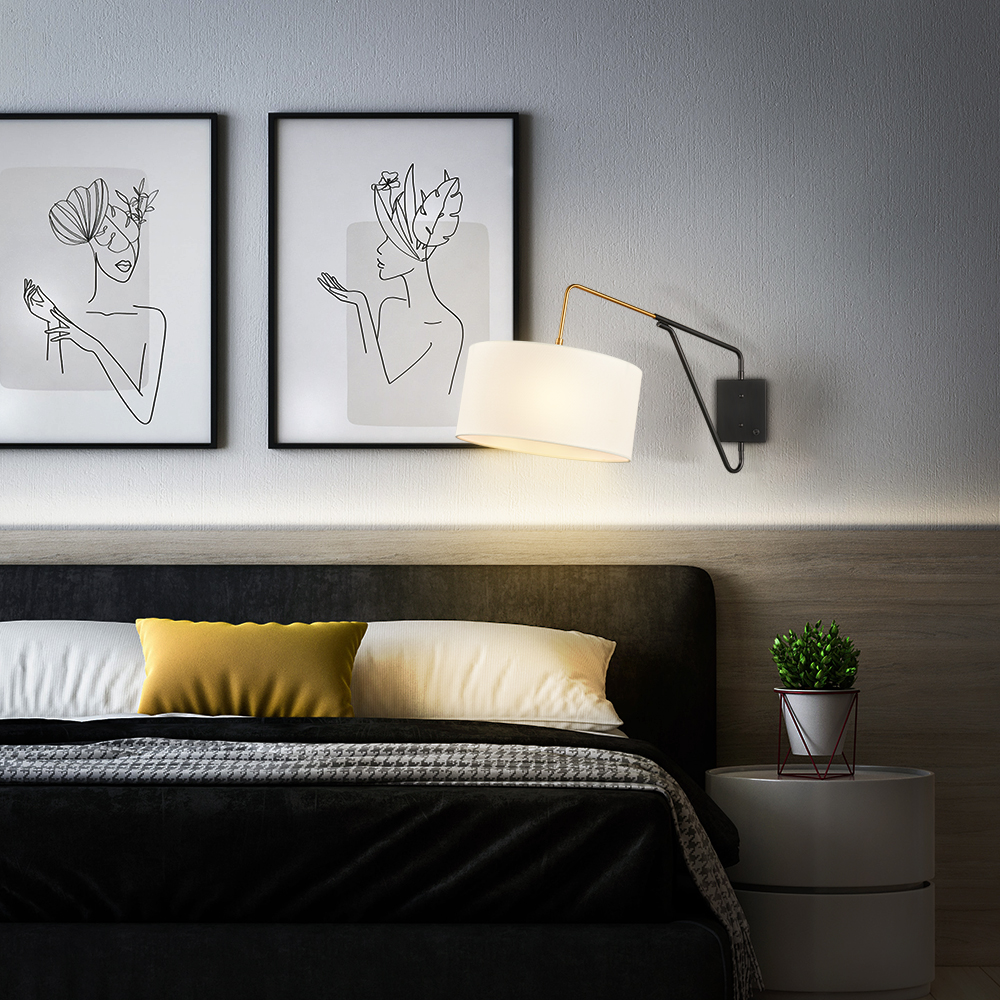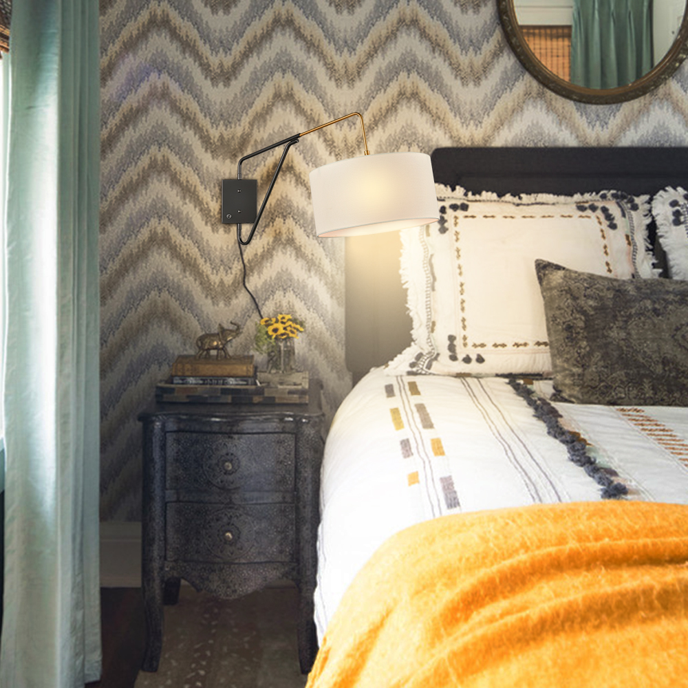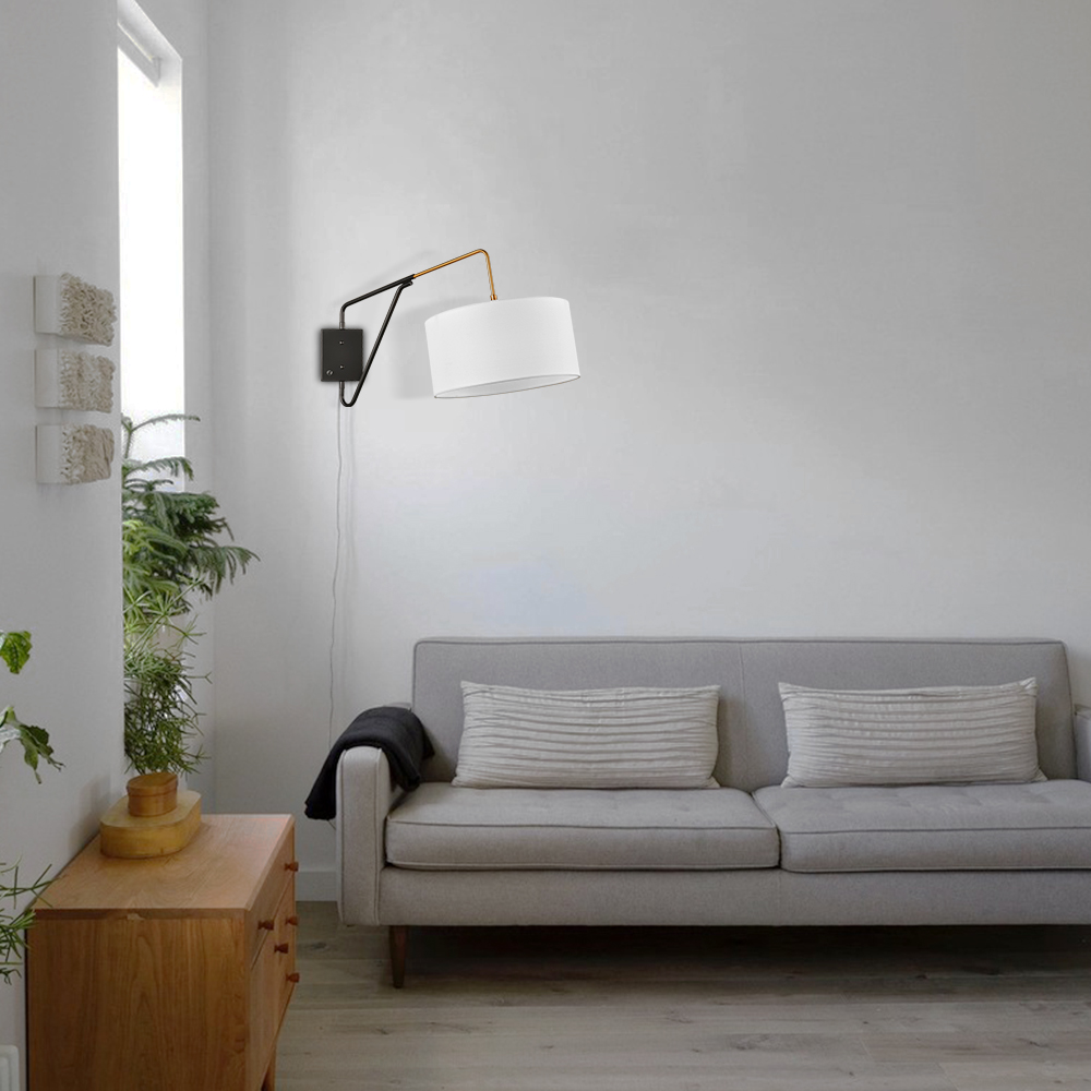 This mid-century fabric plug-in wall lamp’s canopy and part of its swing arm are coated in a rustproof black finish, injecting a traditional vibe into your interior. The wall light’s beige linen fabric drum shade completes the aesthetic by adding a dose of character.