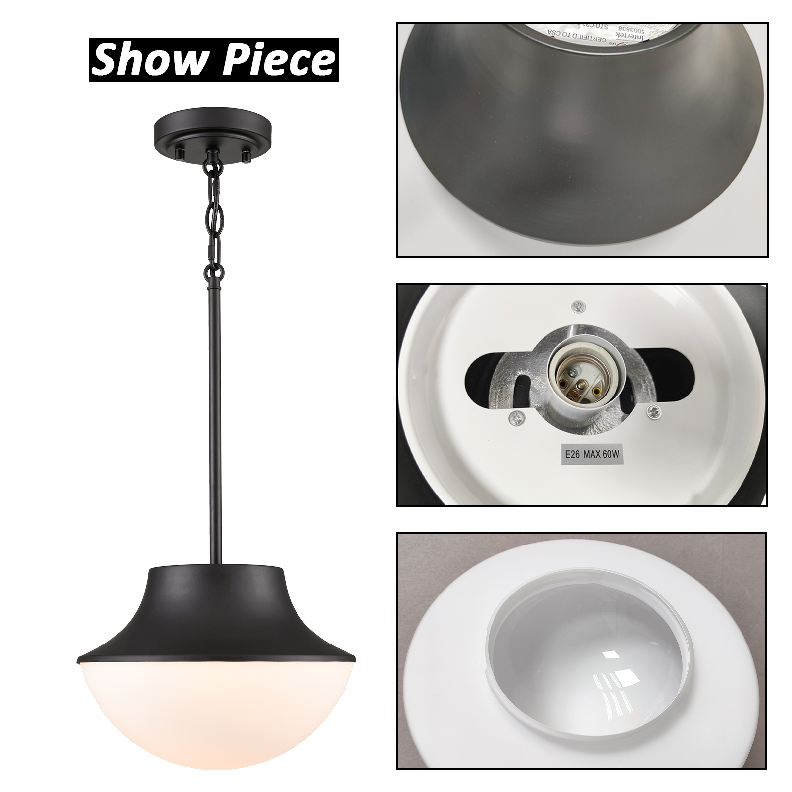 The mid century modern pendant light boasts a rustproof black finish, giving your living space a touch of urban sophistication. Crafted of impurity-free hand-blown milk glass, its dome shade flaunts elegant geometry and adds a ton of eye appeal to the scene. Its milk glass dome shade contrasts the black finish and adds alluring visual interest to the living area. A charming glow shines through the opaque glass shade, creating intriguing light effects and shades. It is sloped ceiling adaptable and comes with one 12-inch rod and one 47.24-inch adjustable chain. Feel free to use the chain/rod only or both to suit your different lighting needs.