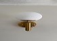 The wall light’s canopy, arm, and lamp-holder show off a glossy brass finish, elevating your decor with a boost of sparkle. Its hand-blown opaque opal glass shade introduces a large dose of texture to the space. Offering a sleek sphere silhouette, it provides the perfect blend of mid-century classic and contemporary elements and completes the aesthetic with an elegant touch.