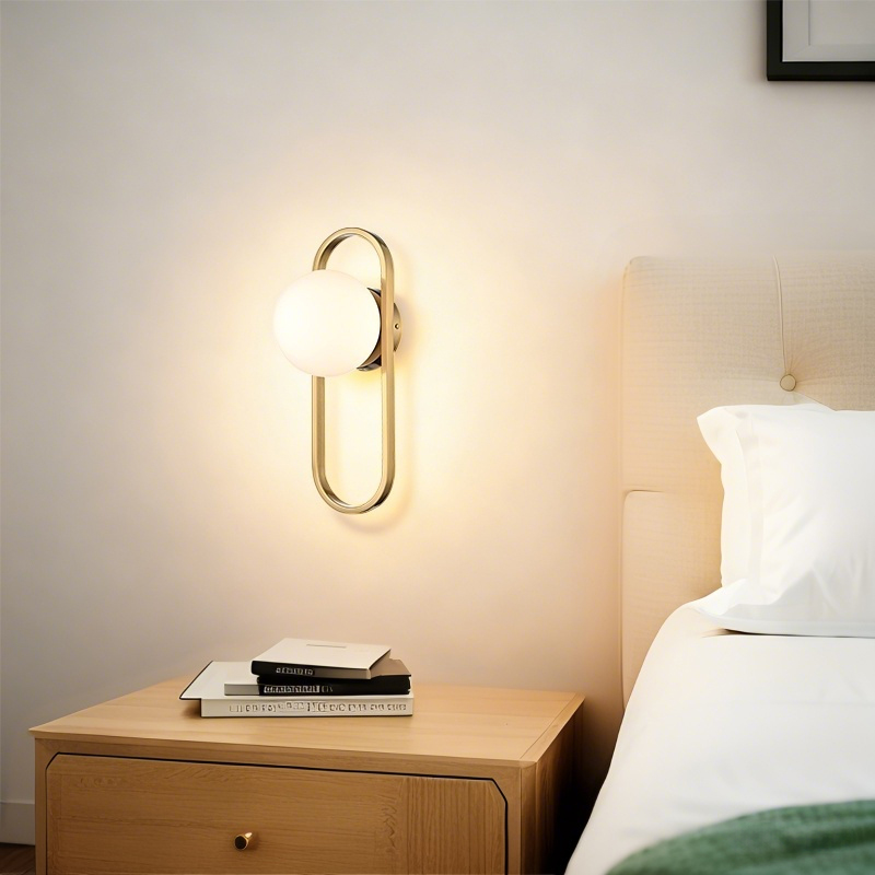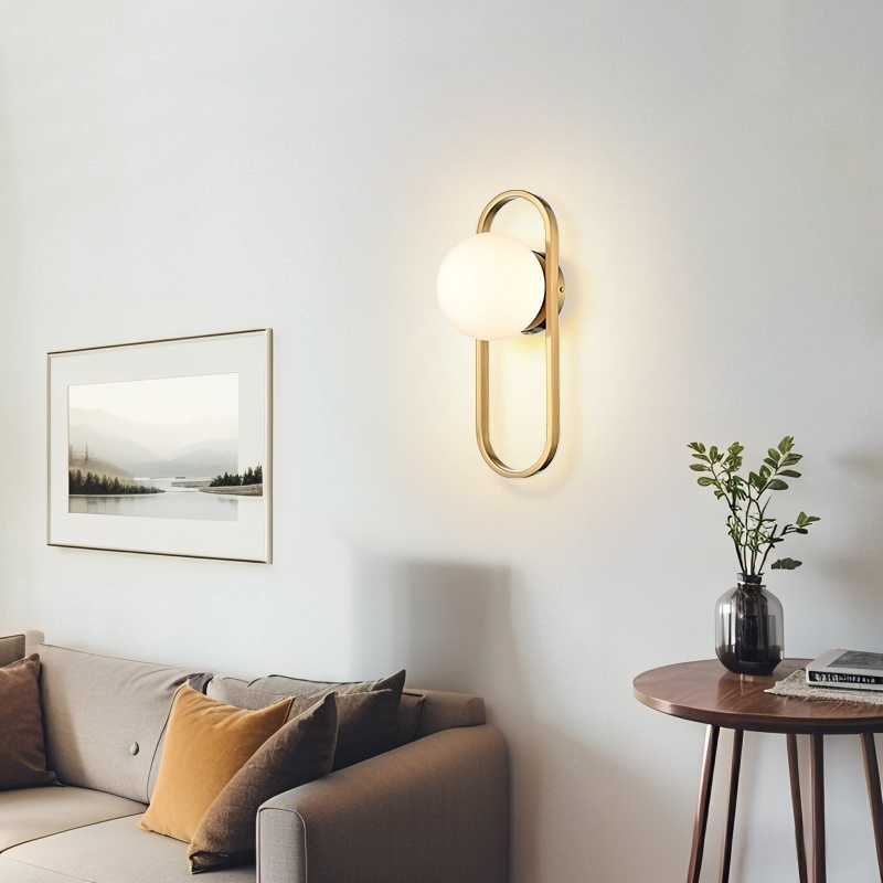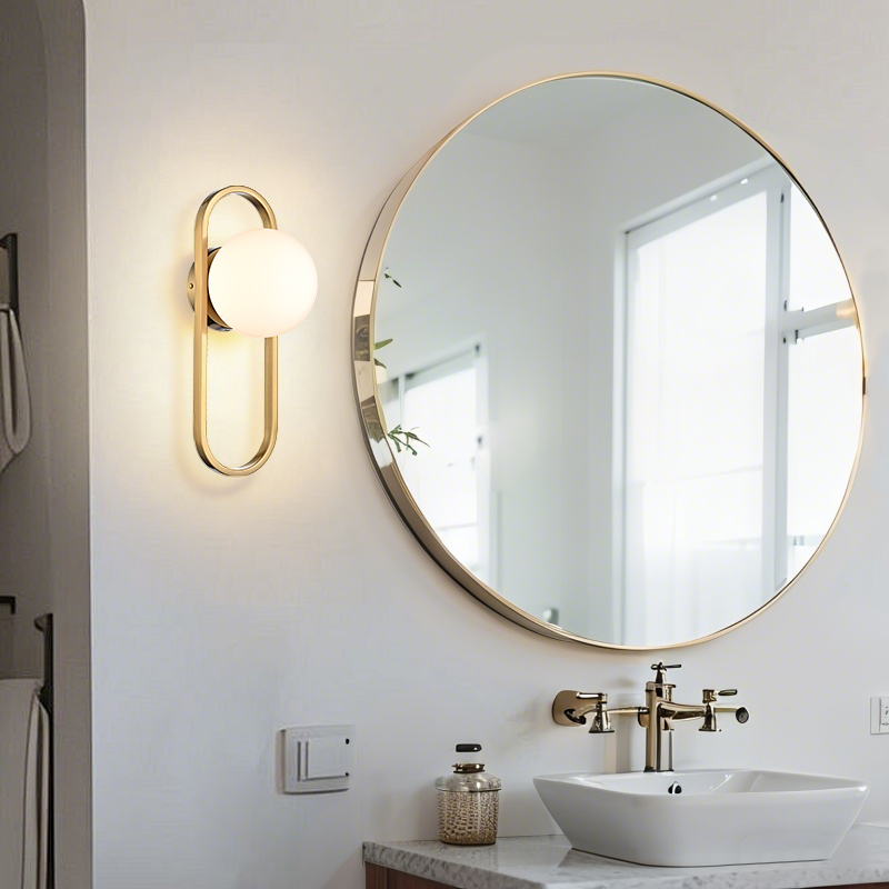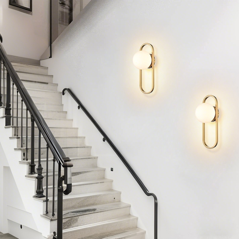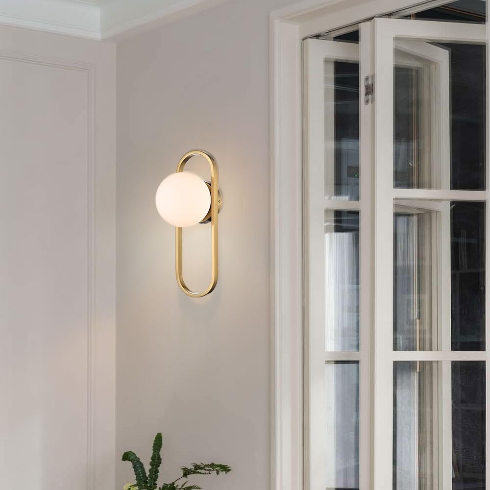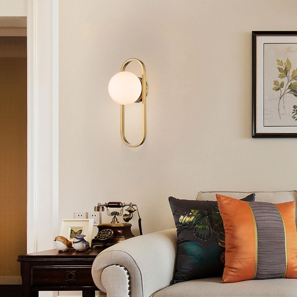 The gold wall sconces add glitzy sparkle to your interior with a rustproof gold finish. Constructed of impurity-free opaque and dreamy white glass, their glass globe shades give your interior a dash of modern sophistication. Their gleaming gold finish contrasts with the white glass shades and adds alluring visual interest to the space. Their metal frames flaunt a sleek curvature and show off an oval silhouette, adding a touch of geometry to your space.
