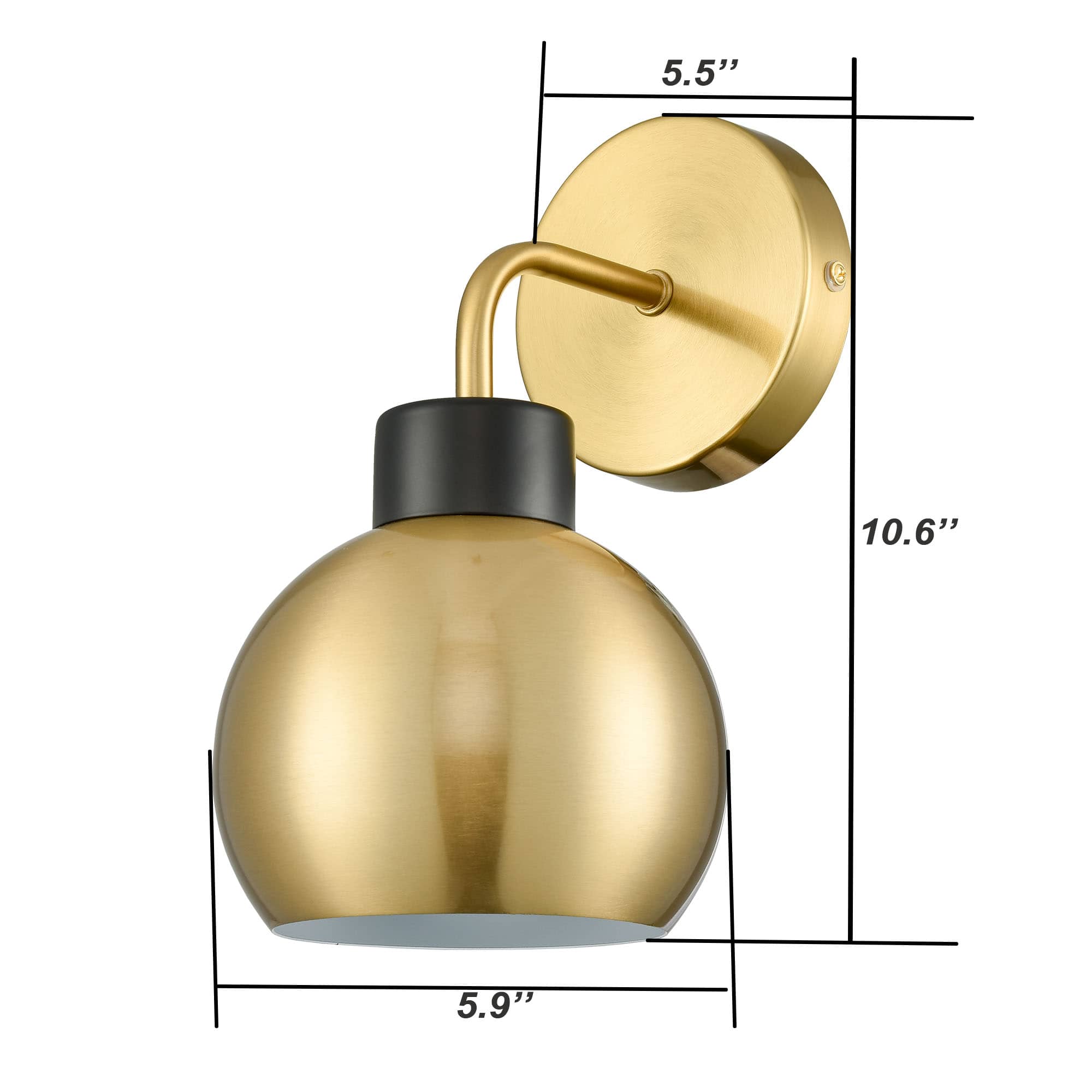 The mid-century wall sconce's canopy and delicately curved arm dressed in an electrophoretic brass finish elevate your decor with glitzy sparkle. Its lamp holder provides a stunning decorative detail with a semigloss black finish. Its globe shade boasts a brass finish on the outer surface while it flaunts a white finish on the inner surface. The white interior helps reflect the light. Showing off a sleek sphere silhouette, it showcases the beauty of geometry and completes the aesthetic with an elegant touch. A mix of finishes encompasses both industrial-inspired qualities and classic elements, yet maintains a modern edge.