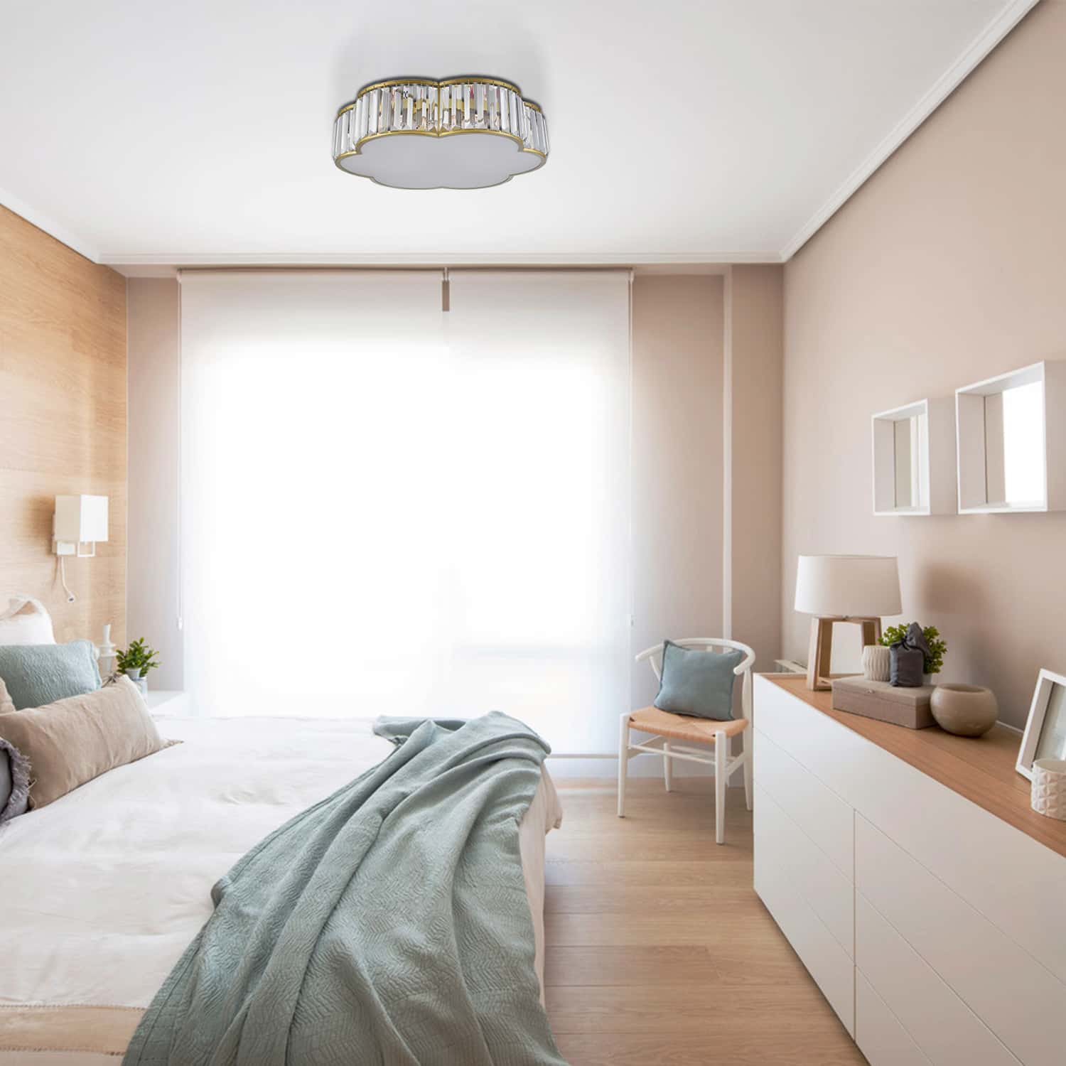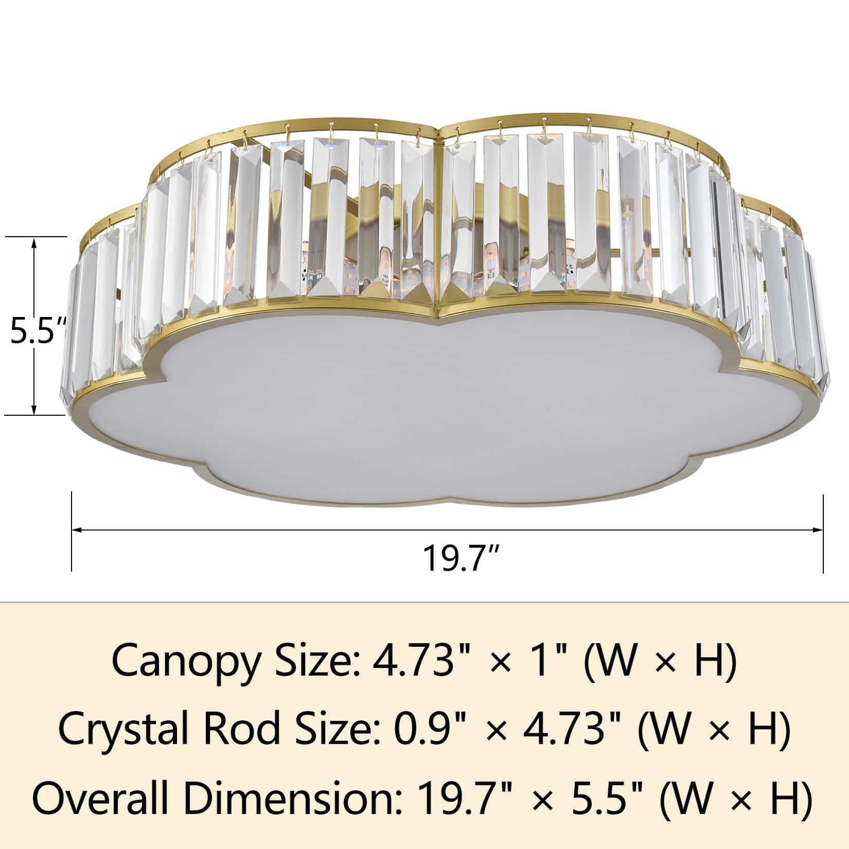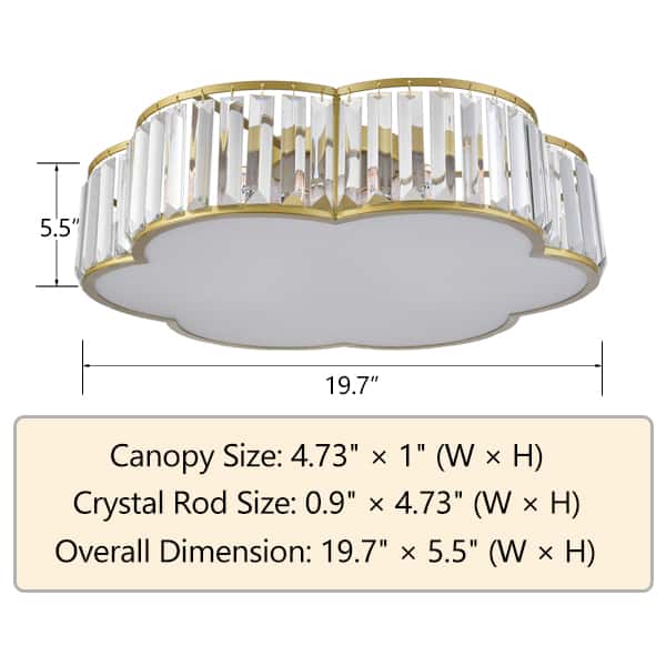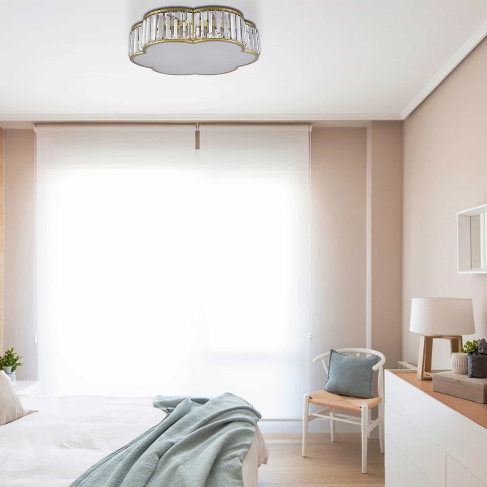 The modern crystal ceiling light is sure to draw the eye upward and adds glitzy sparkle to the space with its breath-taking gold finish. It sports a scalloped drum shade decorated with angular K9 crystal prisms. Offering a surprising twist, it delivers a huge dose of contemporary sparkle and a luxurious touch to your interior. It casts gorgeous light rays throughout your space while the light bounces and reflects off the crystal prisms to create bright, intriguing light effects and shades. Its gleaming finish contrasts the airy crystal drum shade and serves as eye candy. It is a show-stopping addition to your home with its crystal accent.
