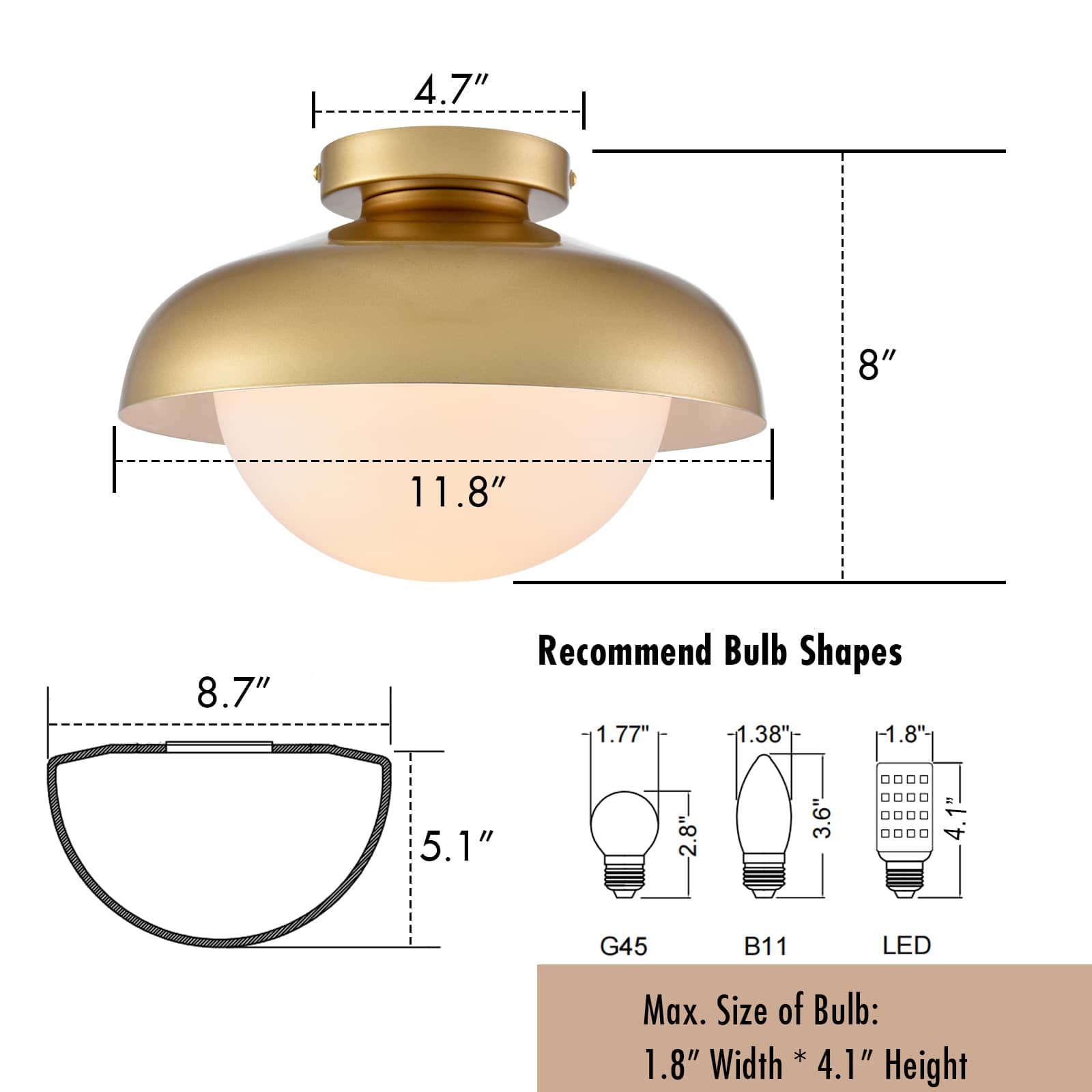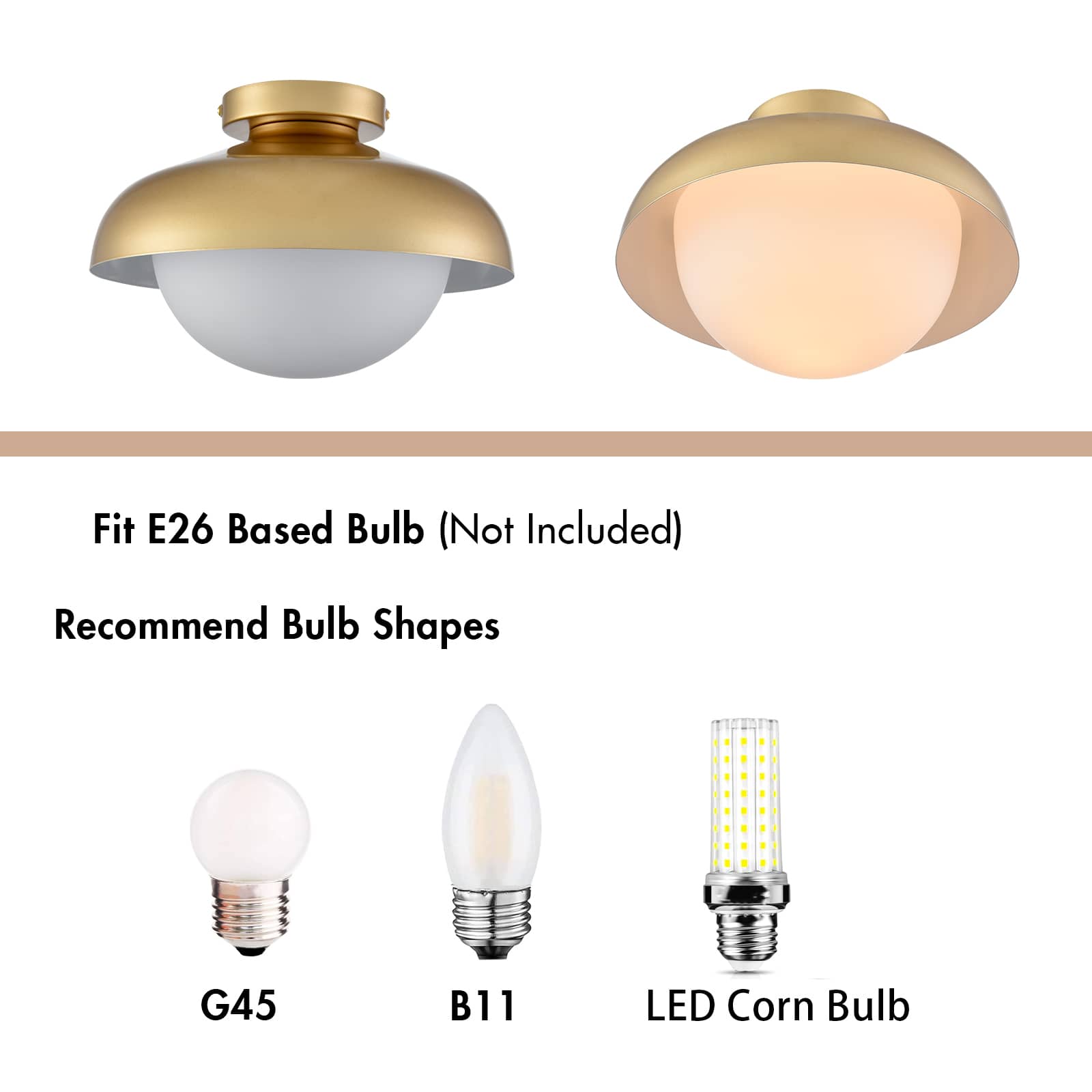 The ceiling light comes with one E26 base socket which is compatible with a variety of bulb types: LED, INCANDESCENT, CFL.