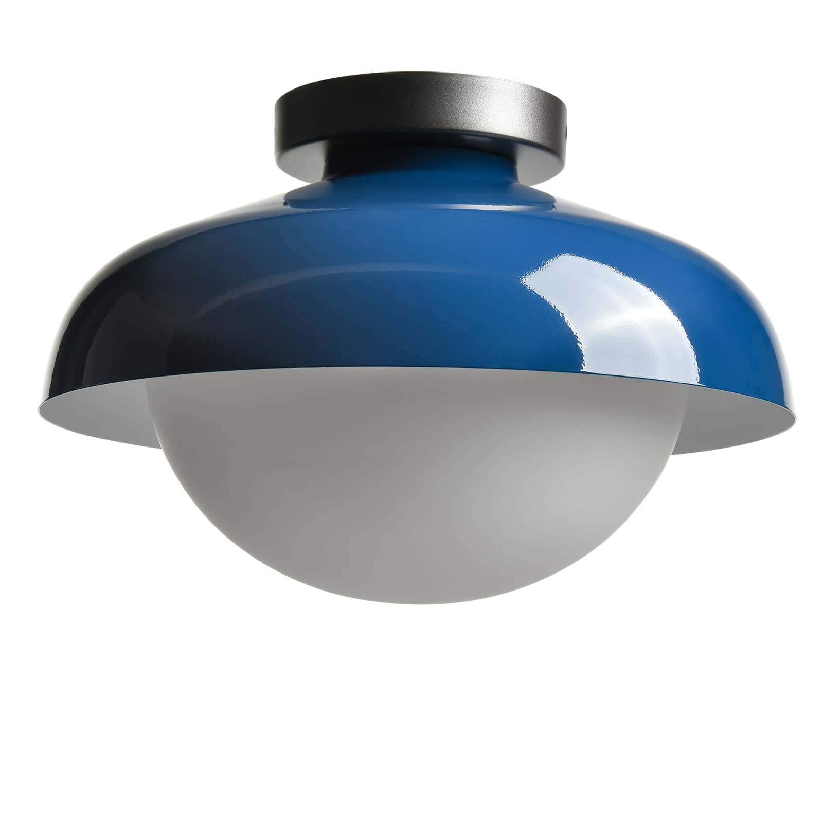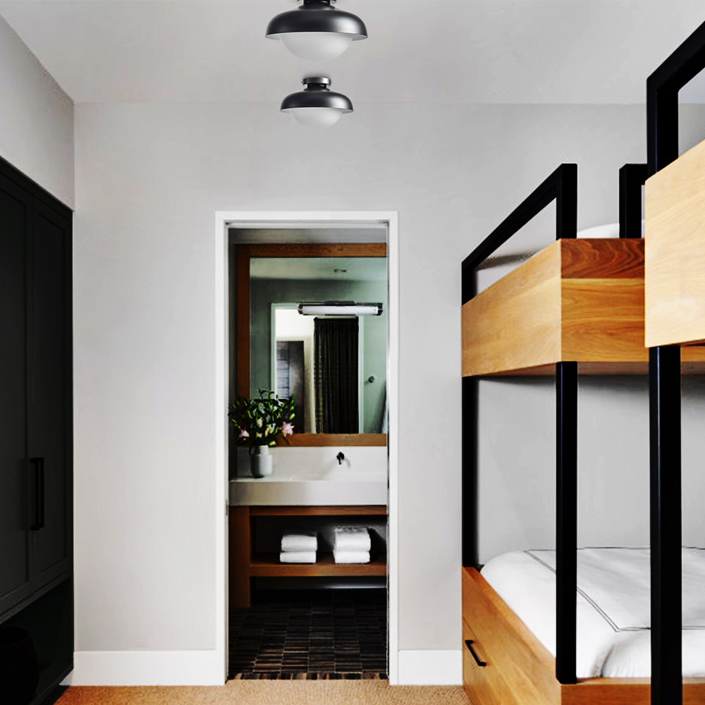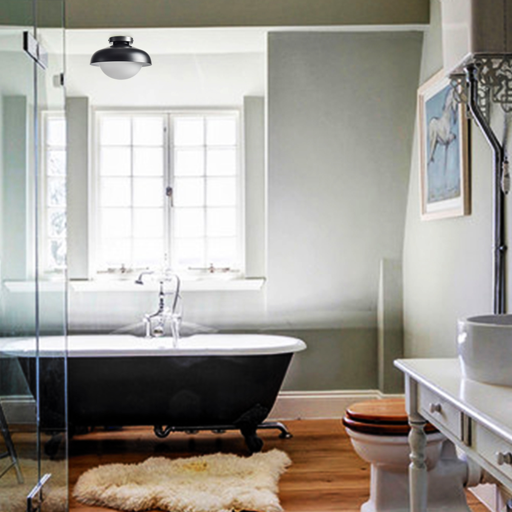 The black barn ceiling light’s canopy sports a dark gray finish, lending an understated elegance. Its metal barn shade protecting the opal glass globe boasts a rustproof black finish. Its mix of finishes encompasses both a dash of drama and a touch of modernity, yet maintains an industrial edge. Crafted from impurity-free hand-blown glass, its opal glass shade distributes light evenly to avoid shadows. The globe shade rounds out the design and elevates your interior with a touch of geometry. Its dark gray finish and the black barn shade offer a stark contrast to the opal glass shade and add alluring eye appeal to the space.
