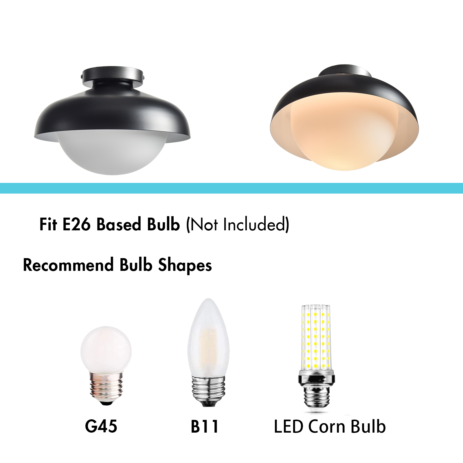 The ceiling light comes with one E26-base socket which is compatible with a variety of bulb types: LED, INCANDESCENT, CFL.