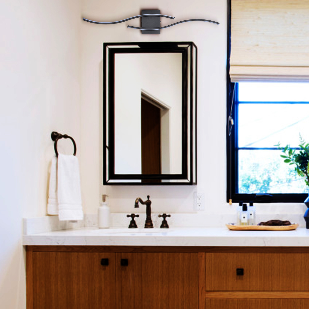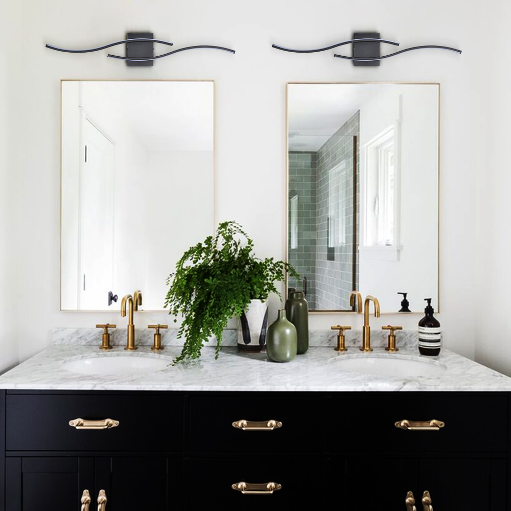 Being coated in a matte black finish, the LED wall light fixture adds a touch of modern elegance to your interior. It shows off a simple but edgy design as an energy-efficient wall light. Two wavy bars that are crafted of aluminum and iron are put together to present a minimalist yet geometric look. It offers a surprising twist and supplies a dash of drama without overpowering the rest of the space. A charming glow shines through the wall light, filling the space without any glare. It is flicker-free and is able to serve as a light source for all your lighting needs. It can be installed horizontally or vertically.
