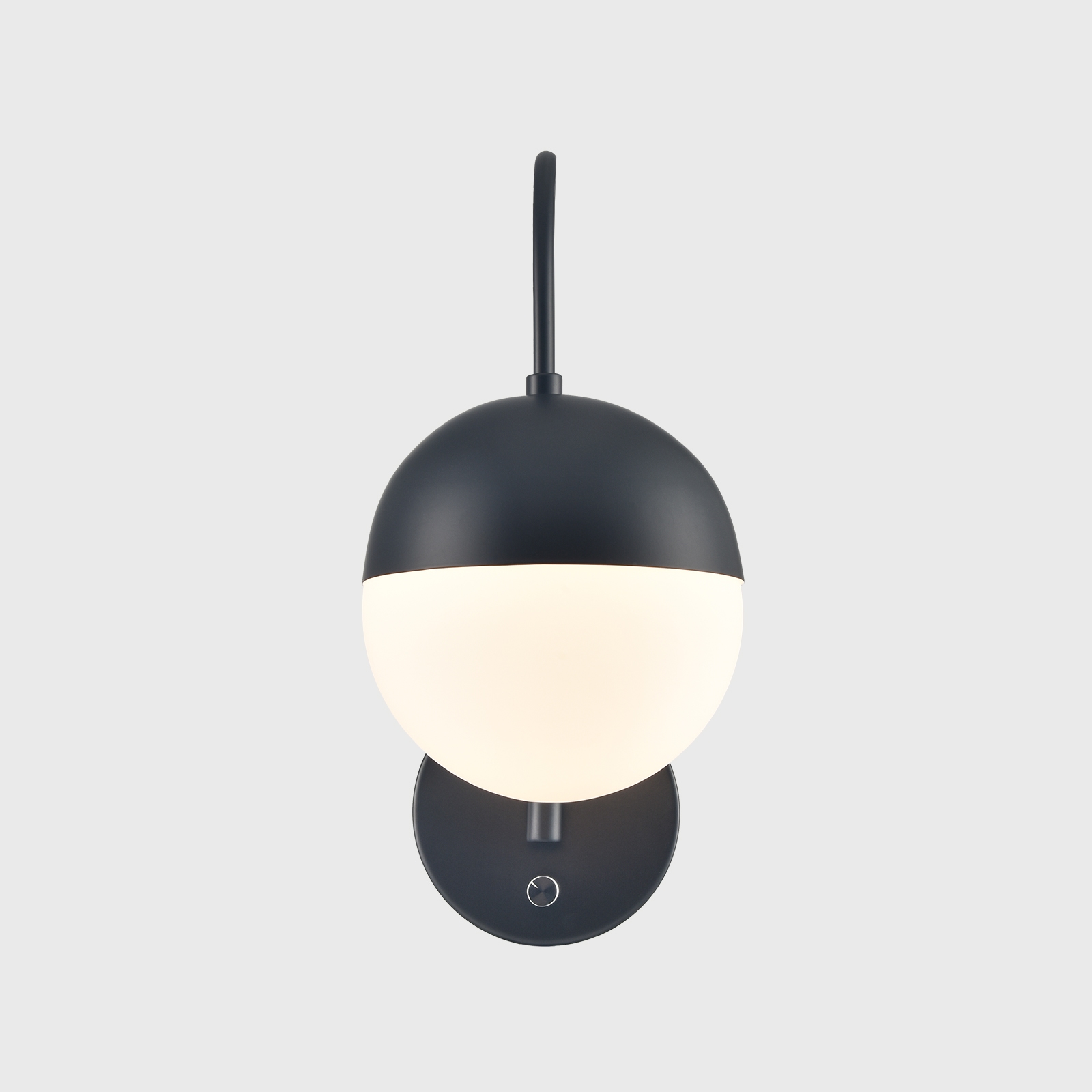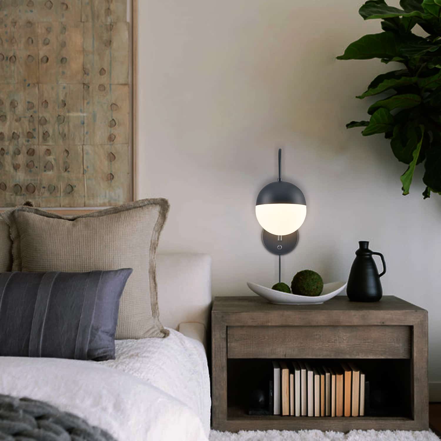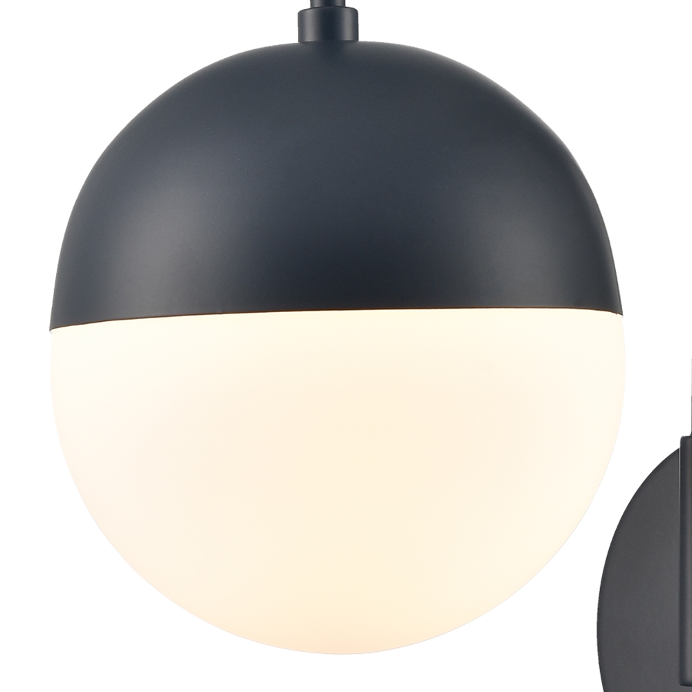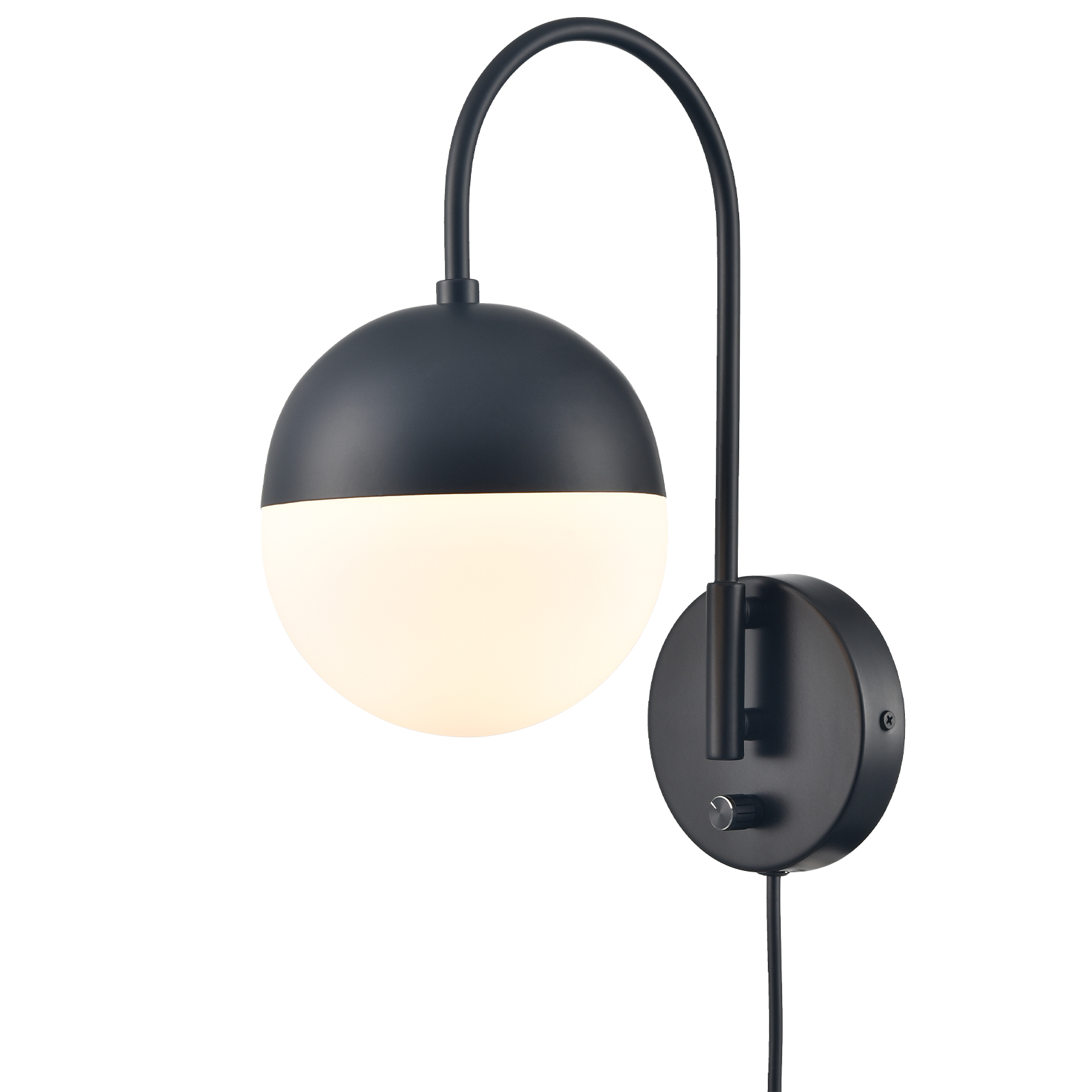 The modern black wall lamp’s canopy, arm, the upper part of the globe shade, and the lamp holder sport a matte black finish, giving your interior a touch of modern sophistication. Its opaque opal glass shade rounds out the design with understated elegance. Its glass shade offers a sleek sphere silhouette and shows off the beauty of geometry. The white lower part of the globe shade contrasts the black finish and adds alluring visual interest to the living space. The switch on the canopy is just an on/off switch without a dimming function. It comes with a 70.8-inch power cord.
