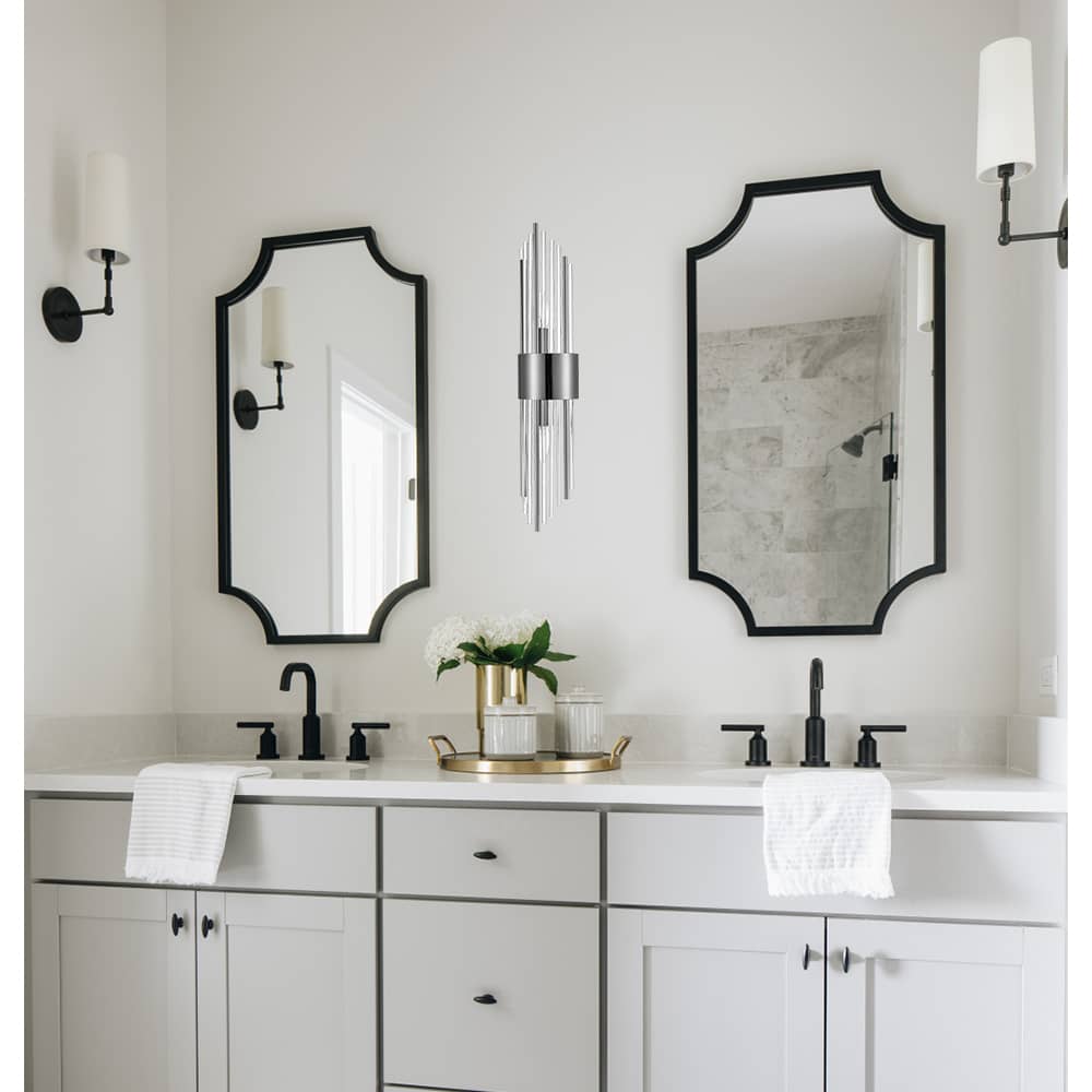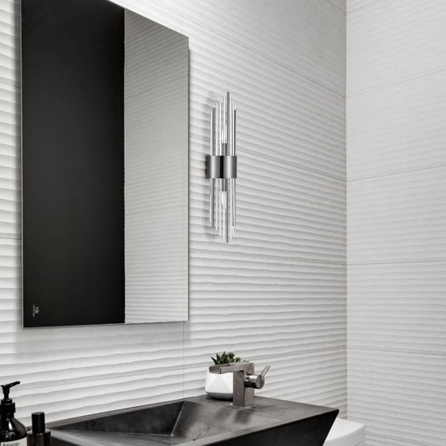 Wanted to upgrade the look of our guest bathroom and these wall sconces were the perfect touch at a great price. Sconces worked well with our gray tile shower and the chrome and black fixtures. They are dimmable, which is a great feature that we used. Love the pattern on the ceiling! If you buy, know that the lip on the base should be facing up as they hold the spires which have a plastic ring to hold them in place. Those plastic rings sit inside the lip. We had to put spires up from the bottom and then put the plastic ring in place on the top for each one. Fairly easily to assemble, just be patient and don't let go of the spire!