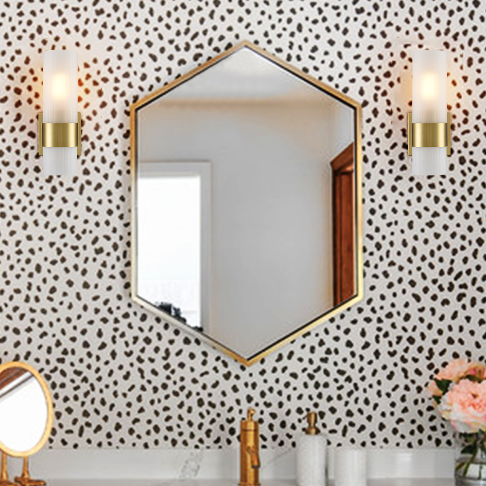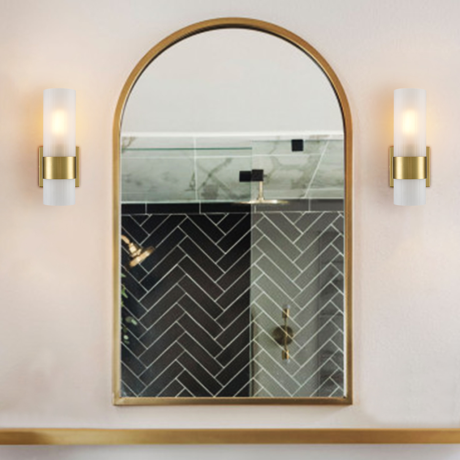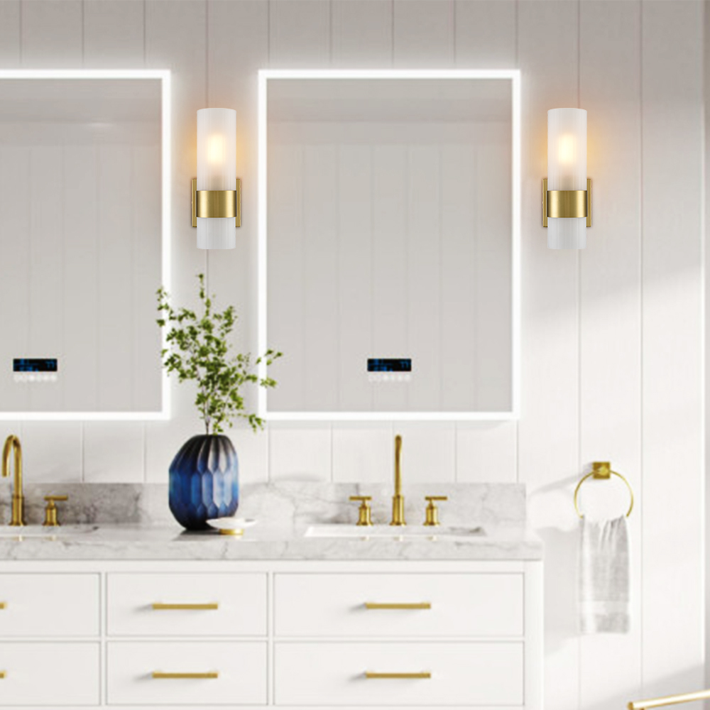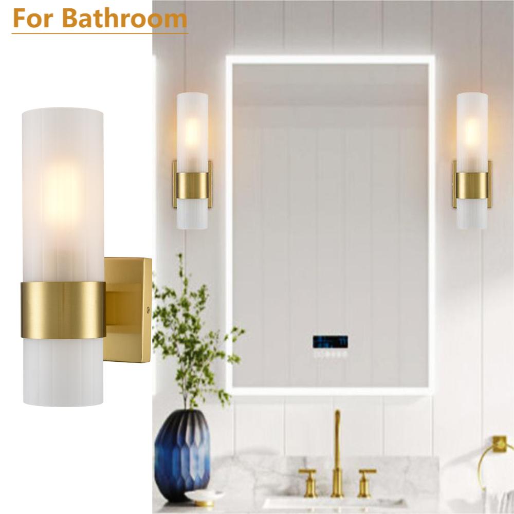 The frosted glass cylinder wall sconce flaunts a rustproof gold finish, bringing a dash of drama and dramatic decorative impact to your home. It shows off a cylinder shade crafted from impurity-free frosted glass. The shade is designed to encircle one exposed bulb to complete the aesthetic. It is held aloft by a gold metal ring on the lower part of the glass shade, bringing an unrivaled level of sophistication. Its cylinder shade contrasts the gold finish and adds alluring visual interest to the living area. The stripes on the frosted glass cylinder give the light fixture an instant texture boost. It can be installed horizontally or vertically.