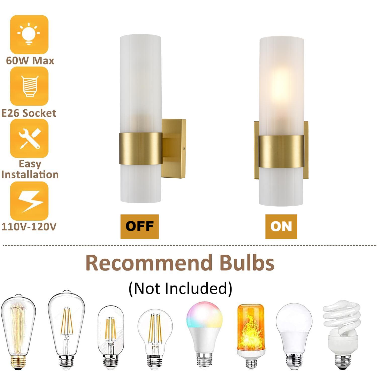 The frosted glass cylinder wall sconce comes with 1 E26-base socket which is compatible with a variety of bulb types: LED, INCANDESCENT, CFL.