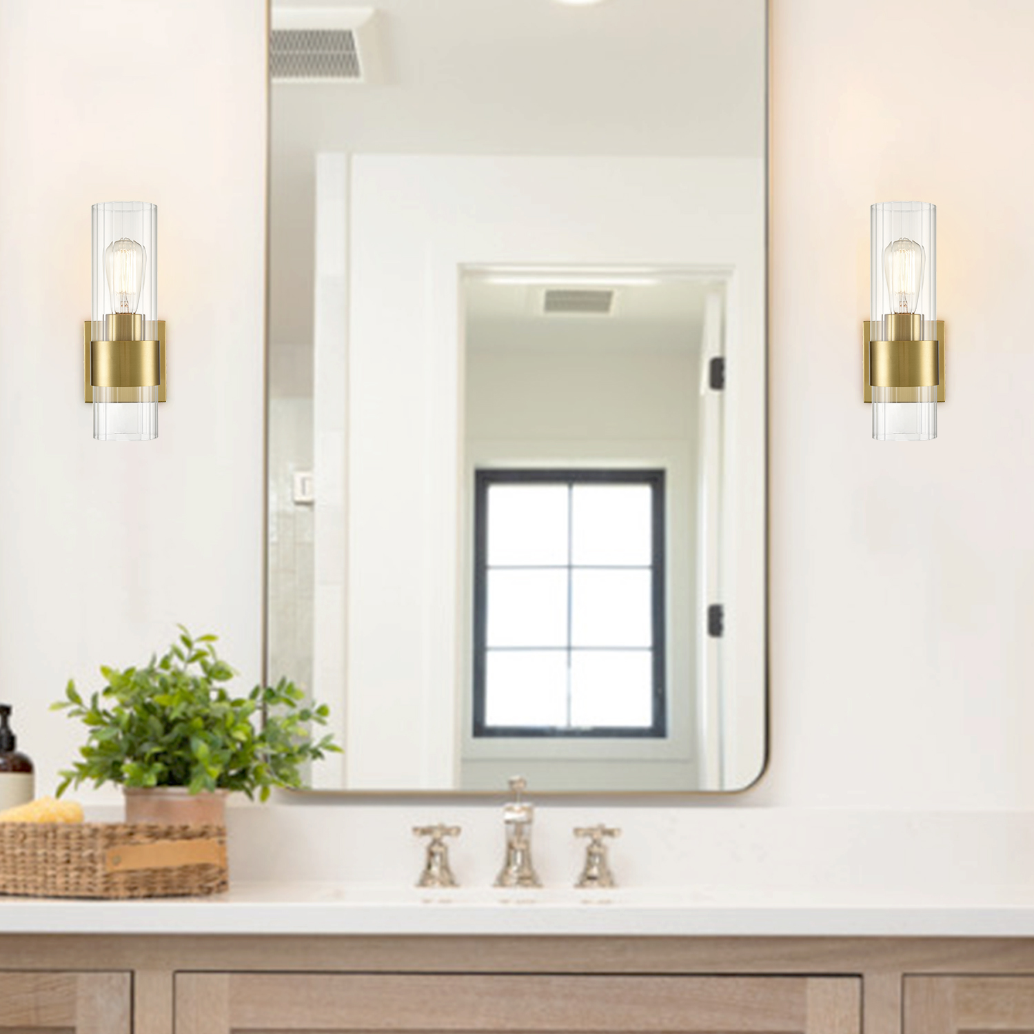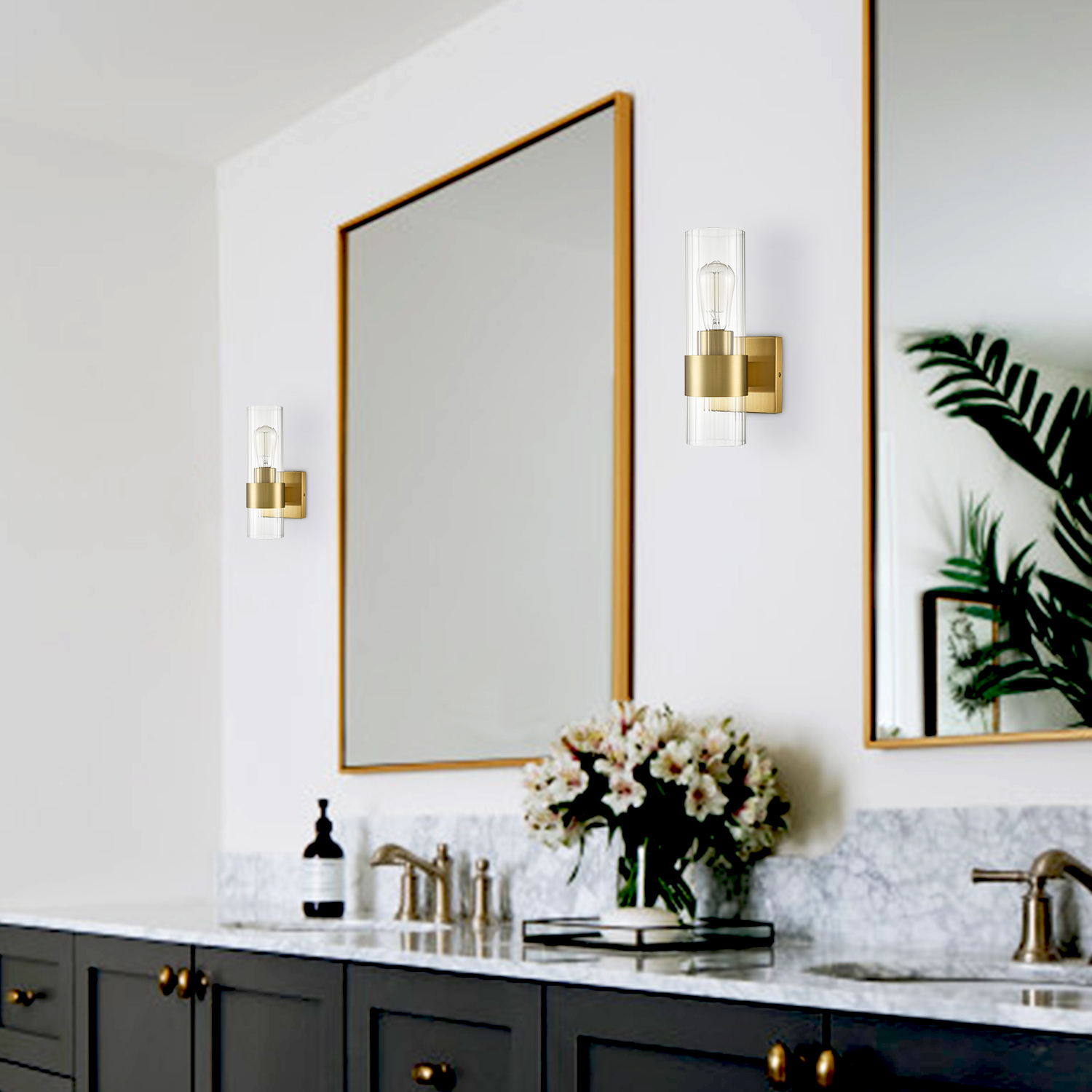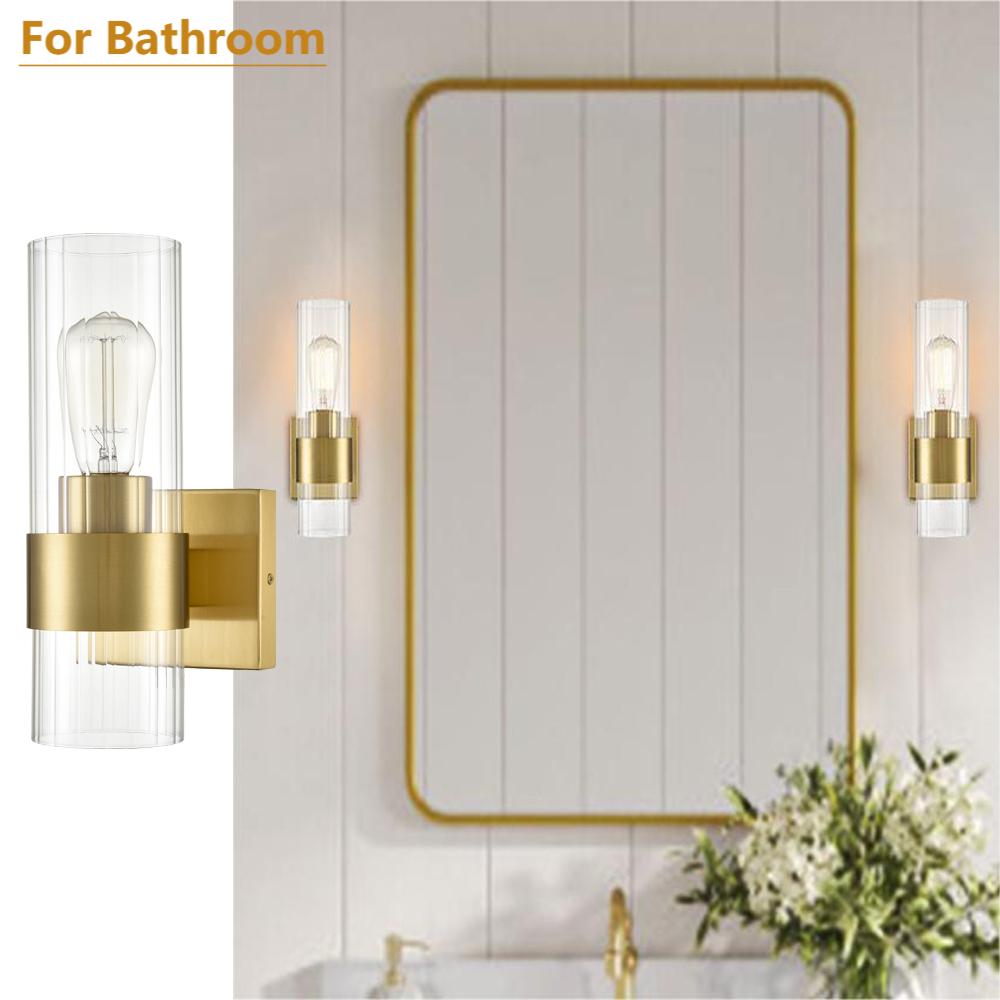 The clear glass cylinder wall sconce flaunts a rustproof gold finish, bringing a dash of drama and dramatic decorative impact to your home. It shows off a cylinder shade crafted from impurity-free clear glass. The shade is designed to encircle one exposed bulb to complete the aesthetic. It is held aloft by a black metal ring on the lower part of the glass shade, bringing an unrivaled level of sophistication. Its cylinder shade contrasts the gold finish and adds alluring visual interest to the living area. The stripes on the clear glass cylinder give the light fixture an instant texture boost. It can be installed horizontally or vertically.