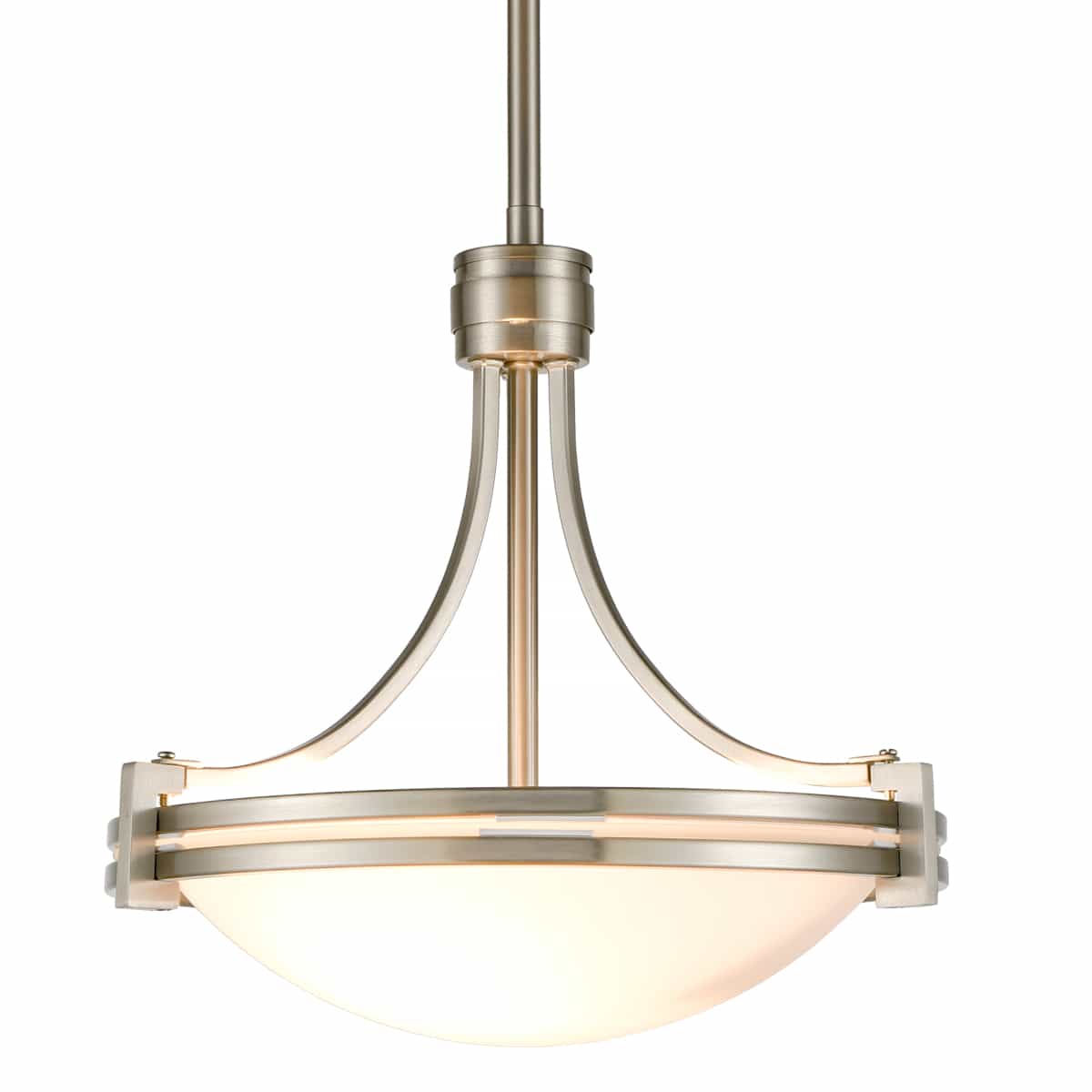 Crafted of high-temperature resistant glass, its white glass dome shade elevates your interior with a graceful touch. Its brass finish contrasts the white glass shade and adds alluring visual interest to the space.