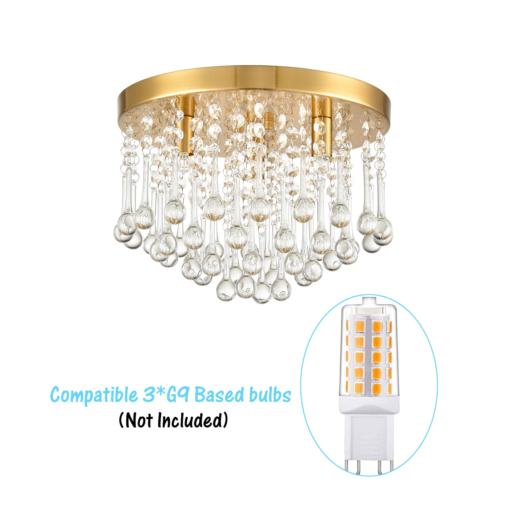 The crystal ceiling light features three G9-base sockets which are compatible with a variety of bulb types: LED, INCANDESCENT, CFL.