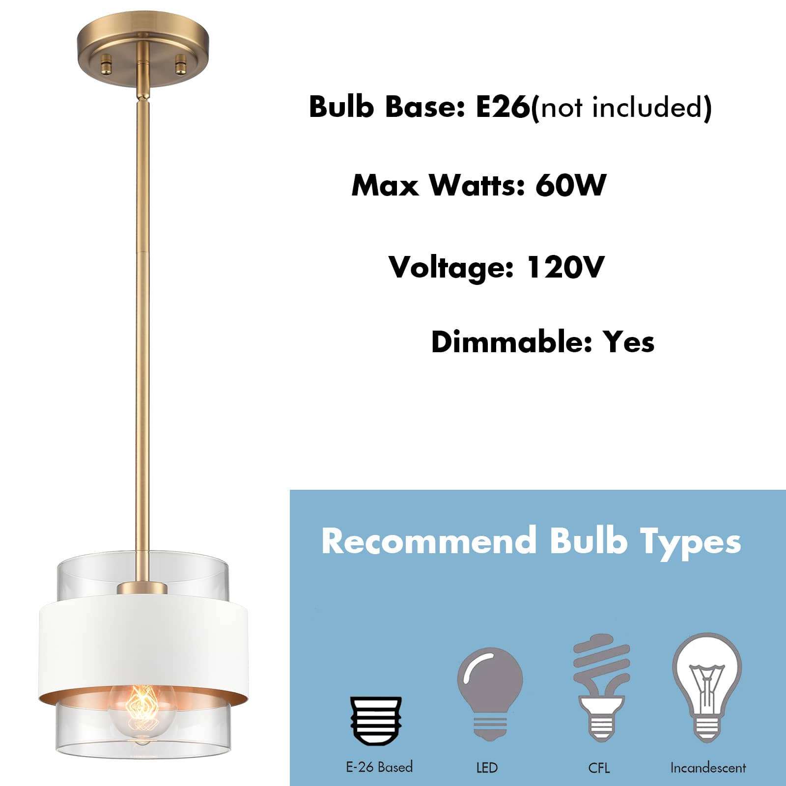 The modern glass kitchen pendant light comes with 1 E26-base socket which is compatible with a variety of bulb types: LED, INCANDESCENT, CFL.