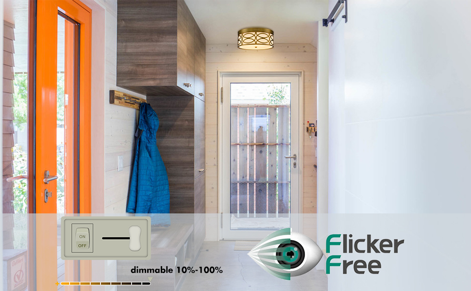 The LED flush mount ceiling light's canopy, lamp-holder, bottom accent, and airy cage are coated in an electrophoretic brass finish. Its creamy white linen drum shade is protected by an airy metal cage featuring conjoining ovals. Flaunting the covered edge workmanship, the LED flush mount ceiling light's creamy white linen lampshade casts an enchanting aura of elegance to the space. The LED flush mount ceiling light is a perfect fixture for your bedroom, dining room, entryway, hallway, living room, patio, and porch. Exuding a lovely glow throughout your space, it creates a cozy atmosphere. ETL listed for dry locations.